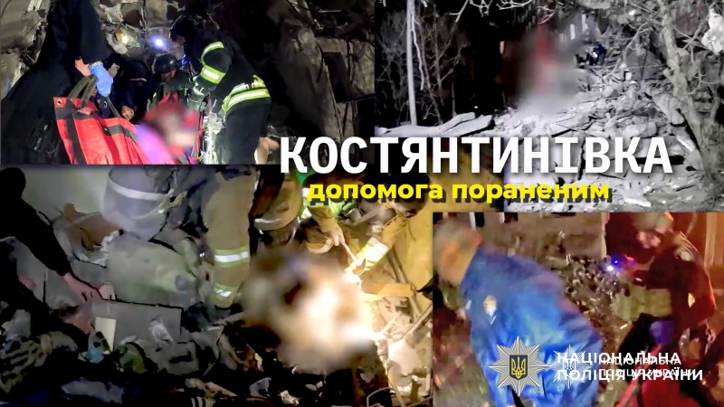 Перші хвилини після удару в Костянтинівці: парамедики поліції деблокують поранених