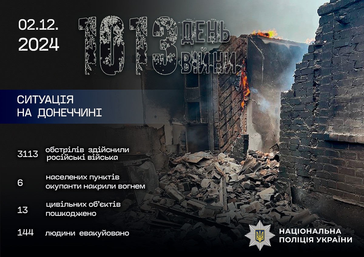За добу поліція зафіксувала 3 113 ворожих ударів по лінії фронту та житловому сектору.