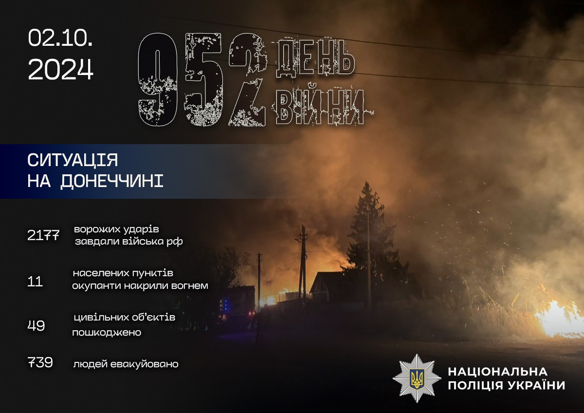 Протягом доби поліцейські зафіксували 2 177 ударів по лінії фронту та житловому сектору.