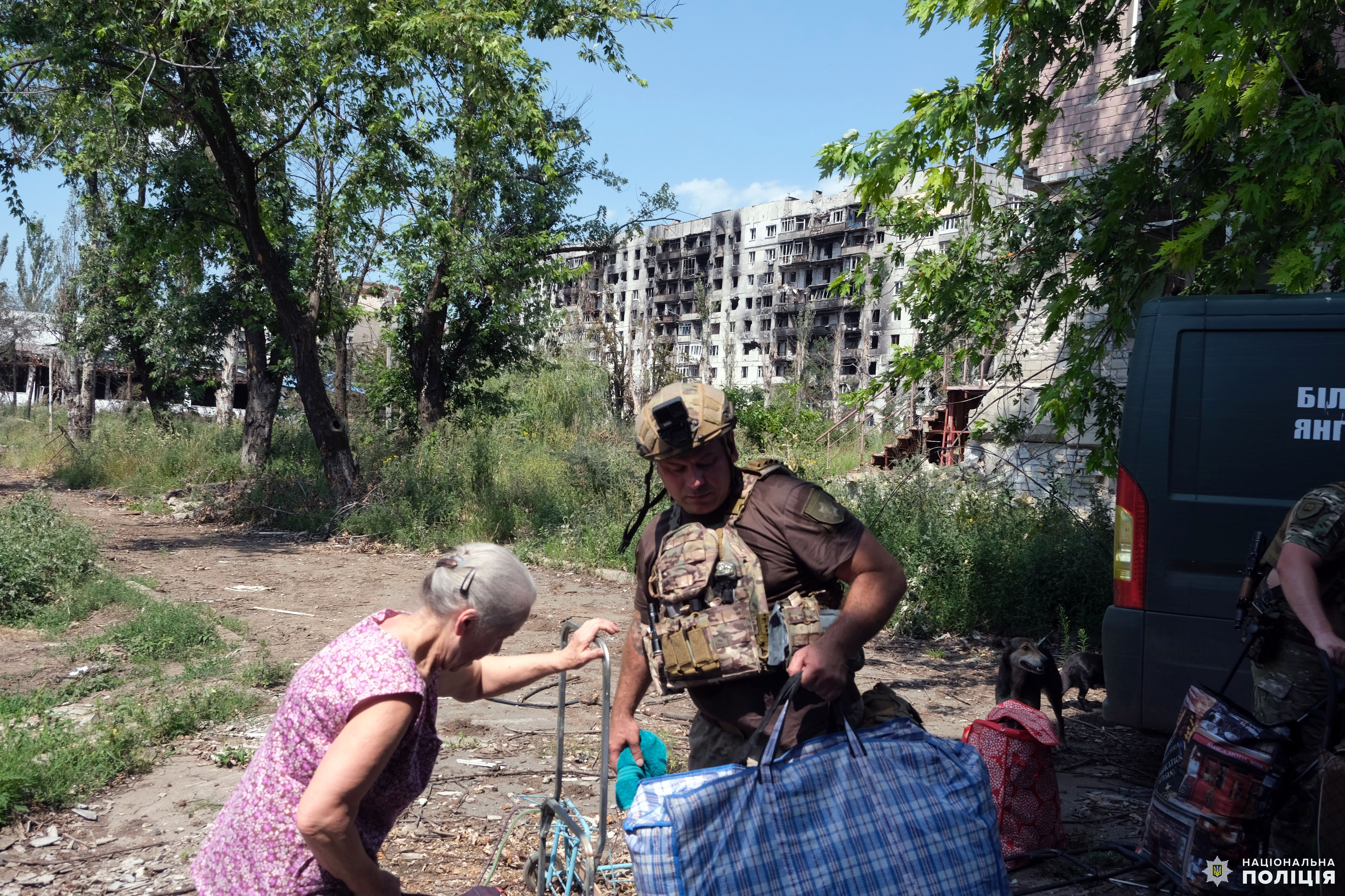 Ворог з артилерії вдарив по місцю, де екіпаж «Білий Янгол» забирав місцевих мешканців. На щастя, ніхто не постраждав. Перечекавши обстріл, поліцейські швидко завантажили до броньованого автомобіля людей, речі та хатніх тварин і палаючими вулицями виїхали з міста. Всі евакуйовані безпечно доставлені до пункту незламності.