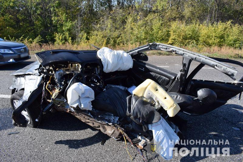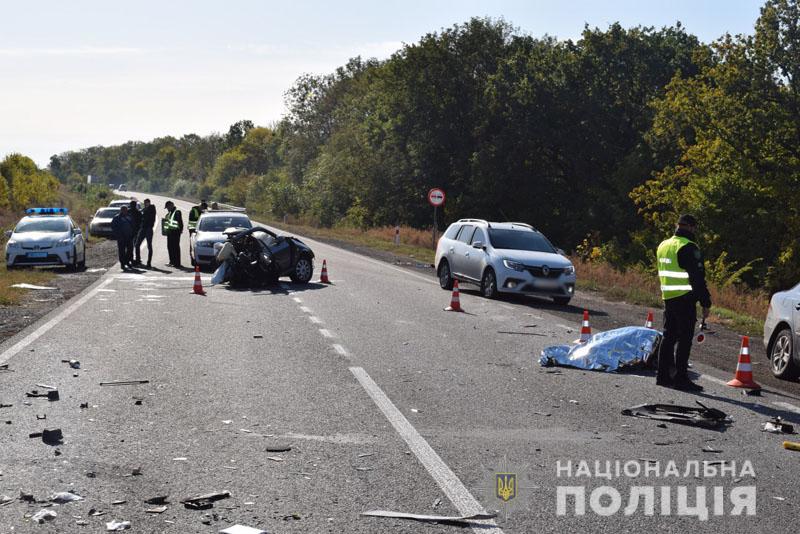 Внаслідок лобового зіткнення двох автомобілів на автодорозі Київ - Харків - Довжанський смертельні травми отримали двоє дорослих та 6-річна дівчинка. Пасажири іншої автівки травмовані. На місці працює поліція, яка встановлює обставини аварії.