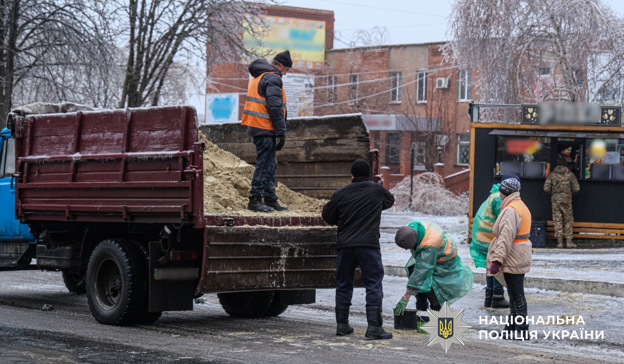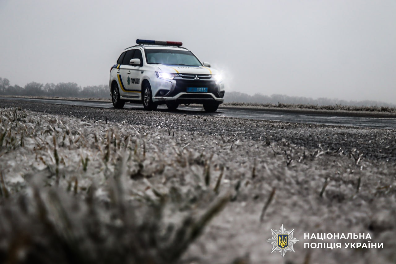 Через ускладнення погодних умов та сильну ожеледицю правоохоронці патрулюють найбільш аварійно-небезпечні ділянки доріг, моніторять ситуацію на автошляхах та вулицях населених пунктів і надають допомогу громадянам.