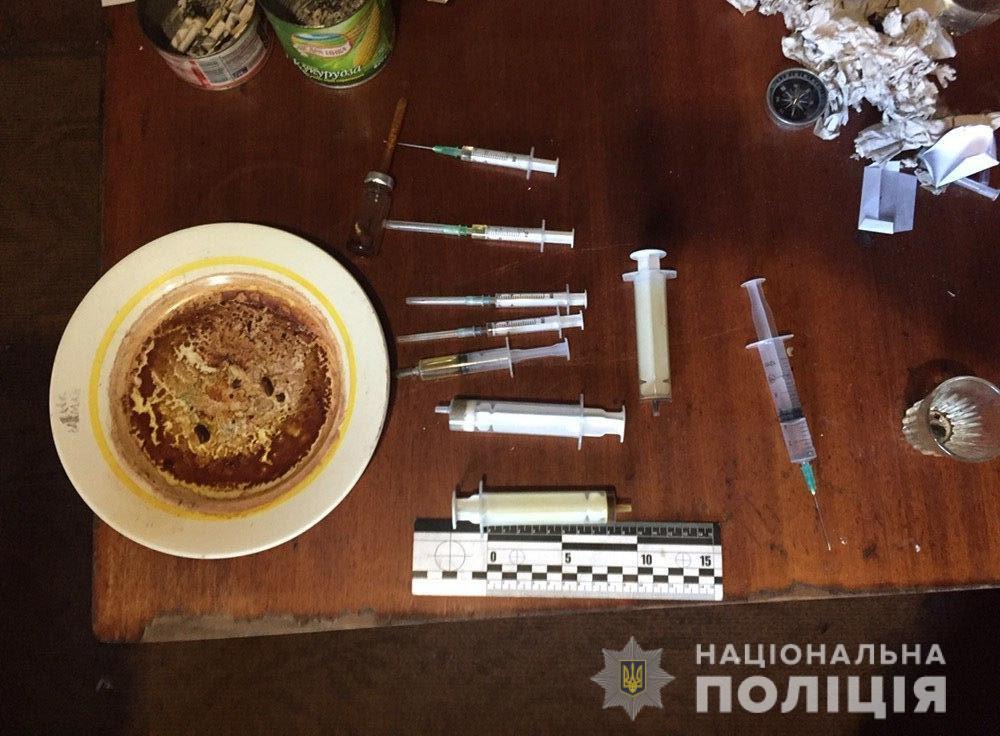 На підставі ухвали суду в помешканні 41-річного чоловіка правоохоронці провели обшук, під час якого вилучили згорток із канабісом, використані шприци та із наркотичною речовиною, посуд та інгредієнти для виготовлення наркотичних засобів.