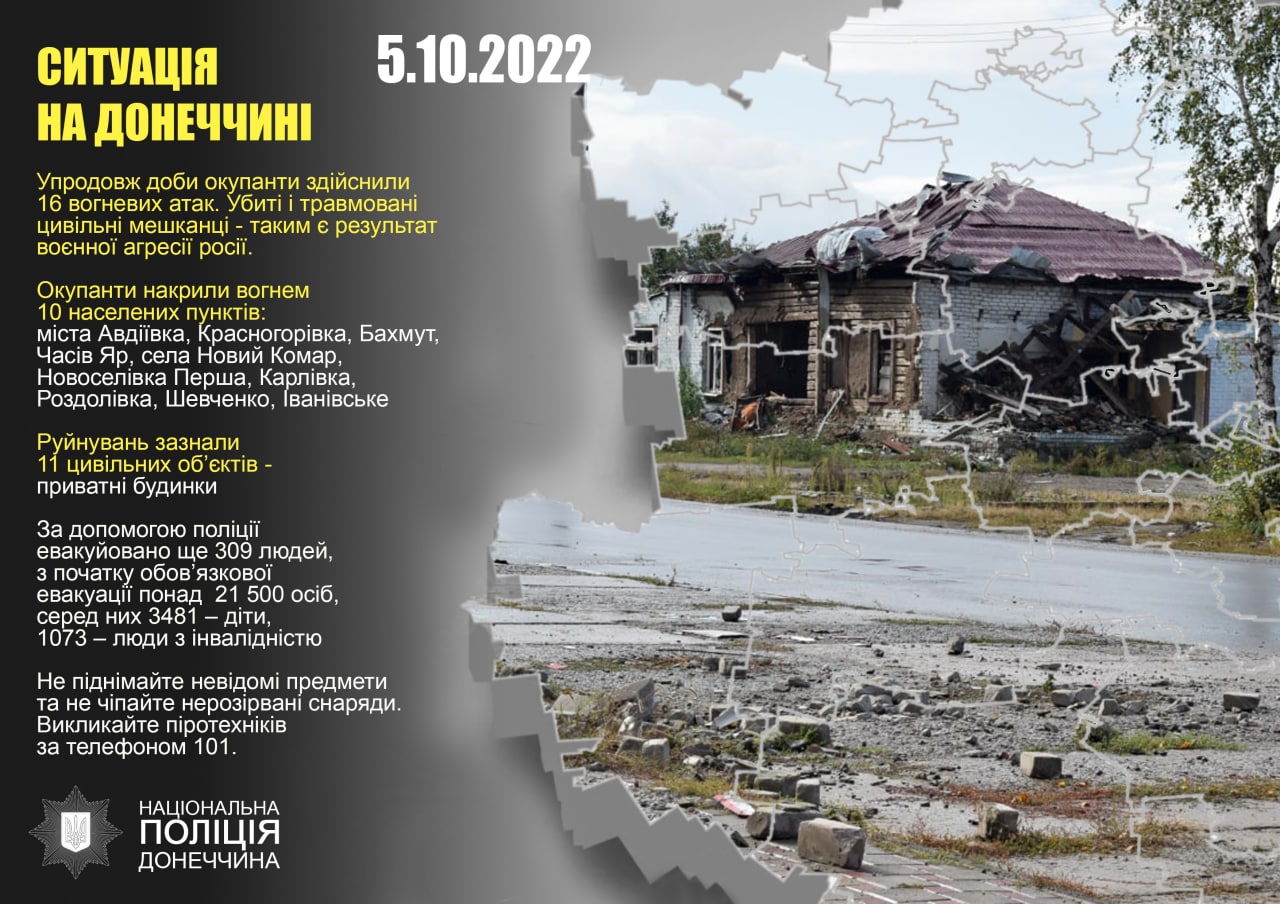 За допомогою поліції евакуйовано ще 309 людей, з початку обов’язкової евакуації понад 21 500 осіб, серед них 3481 – діти, 1073 – люди з інвалідністю.