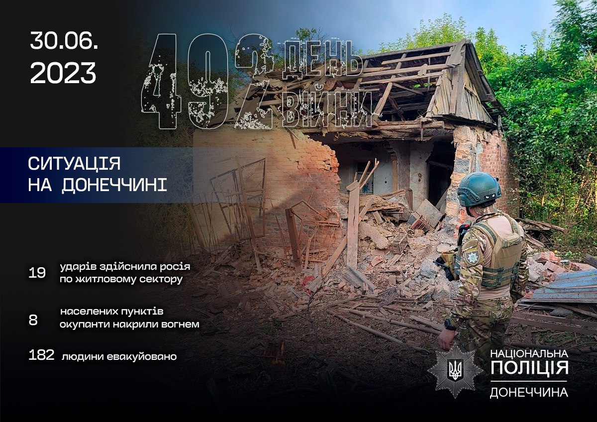 Поліцейські Донеччини протягом доби зареєстрували 19 ударів з боку росії