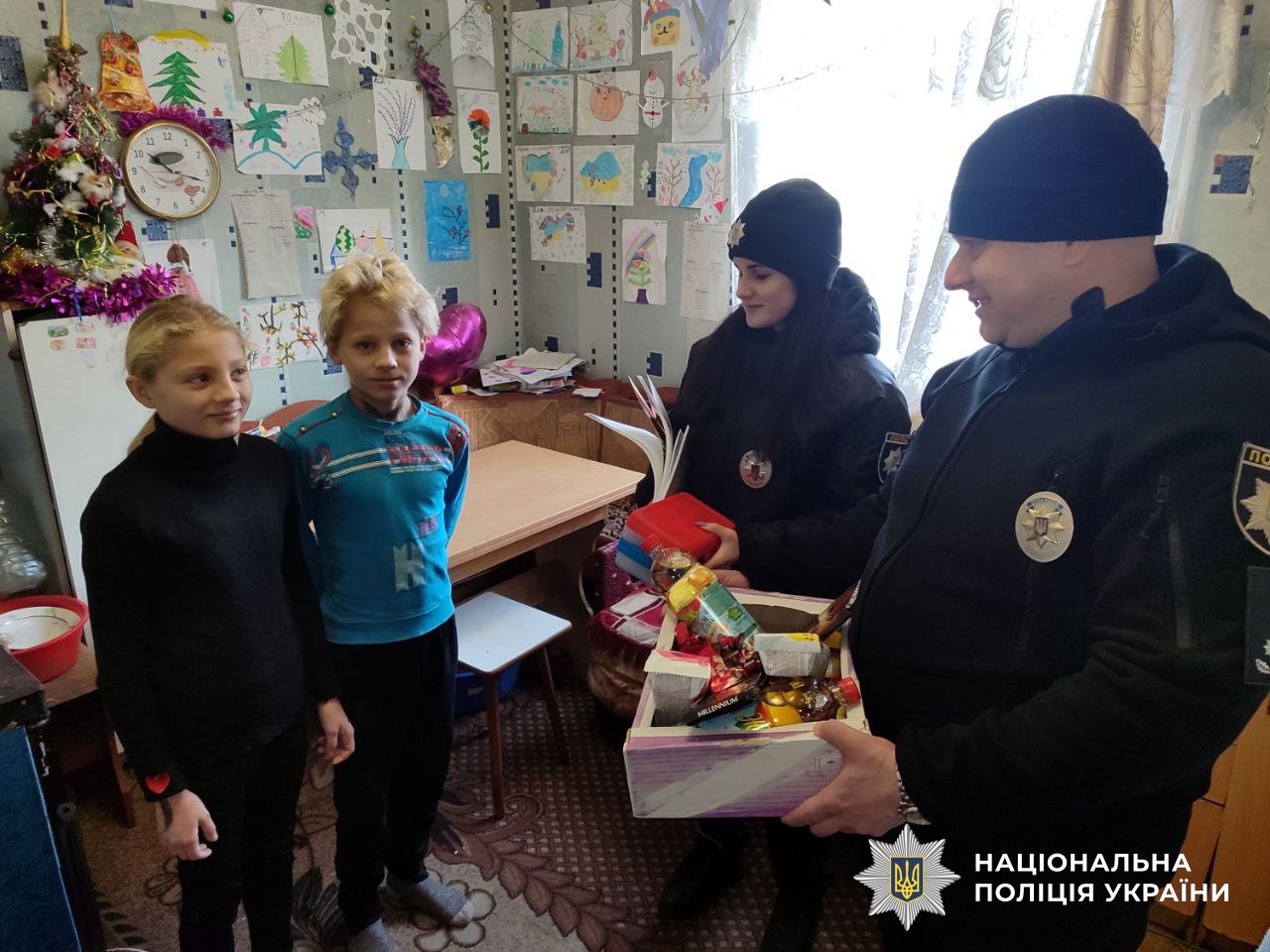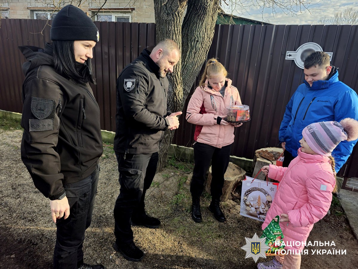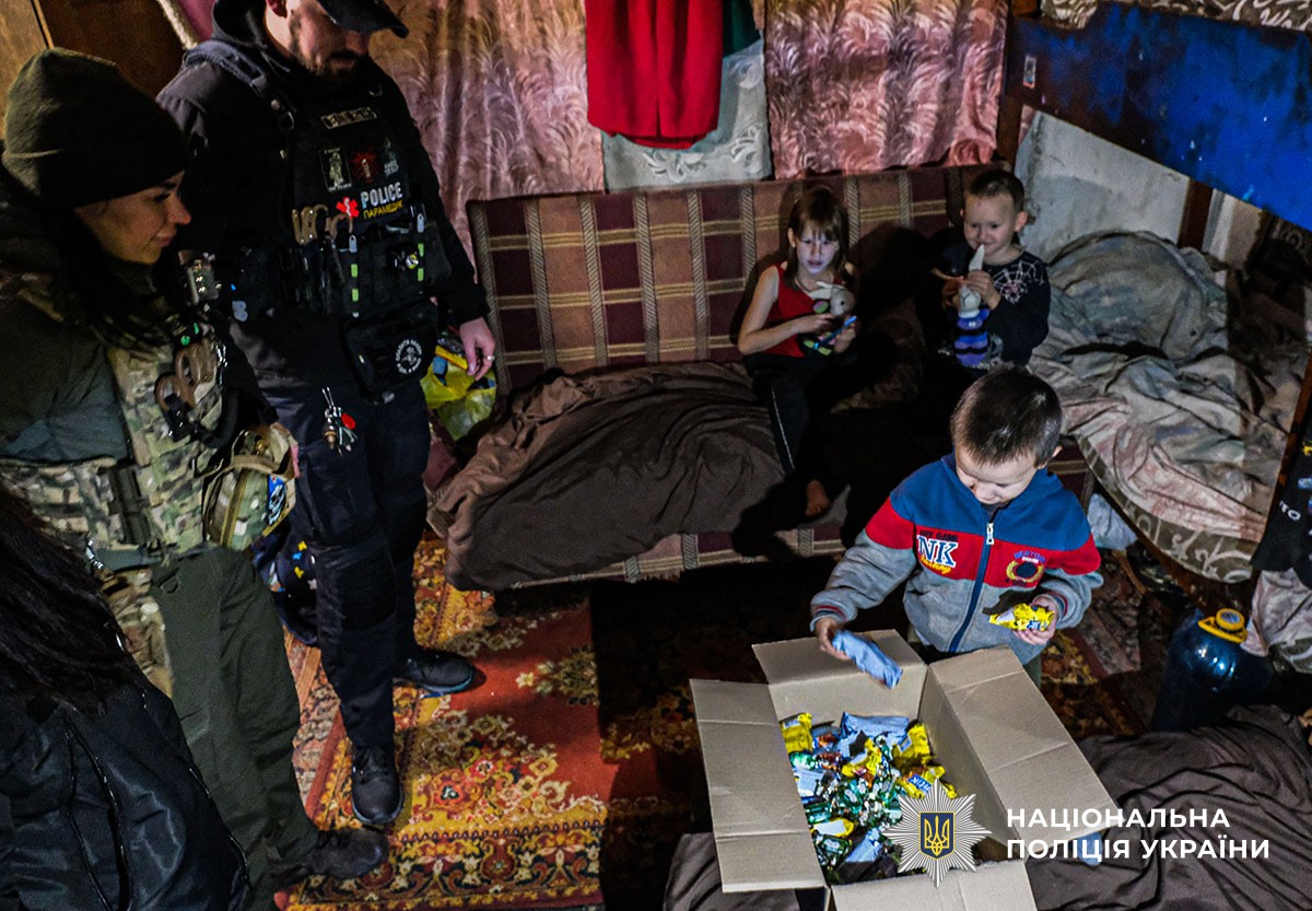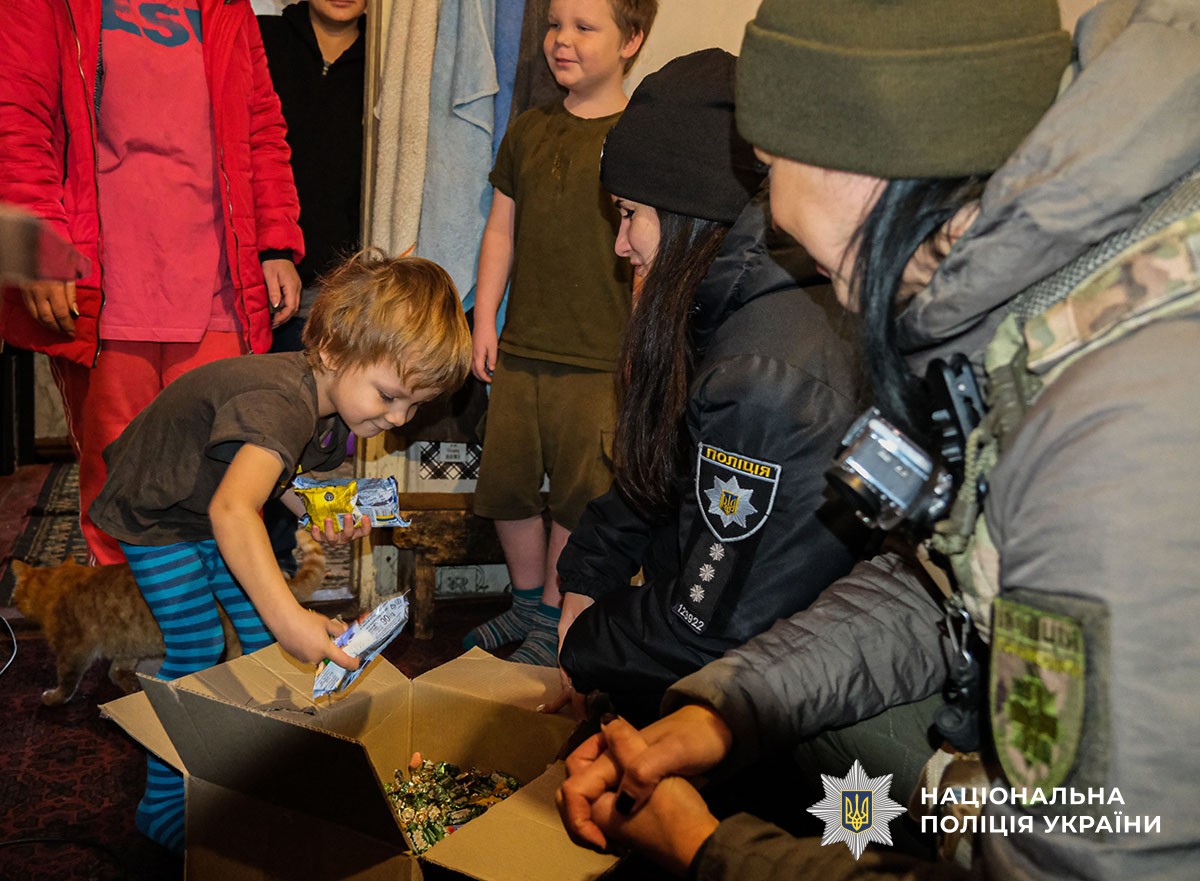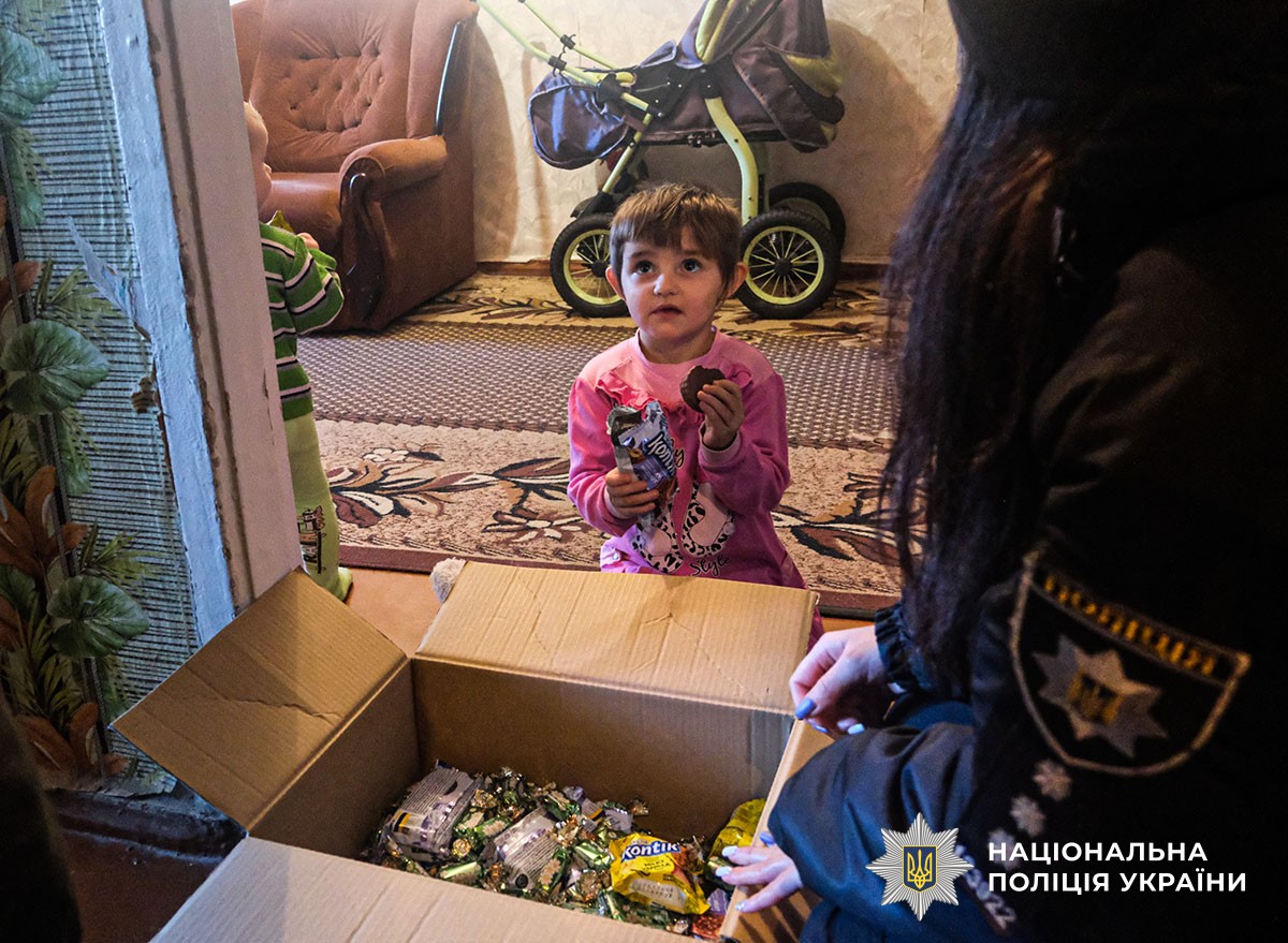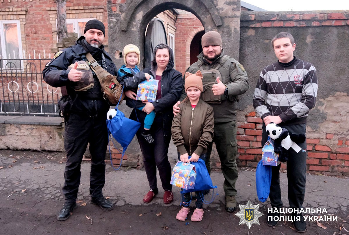 Правоохоронці вирушили у прифронтові населені пункти: дітлахам дарували смаколики, а батьків закликали вберегти життя маленьких та евакуюватись. З найомріянішими подарунками поліцейські завітали й до дітей своїх колег, які віддали життя заради незалежності України.