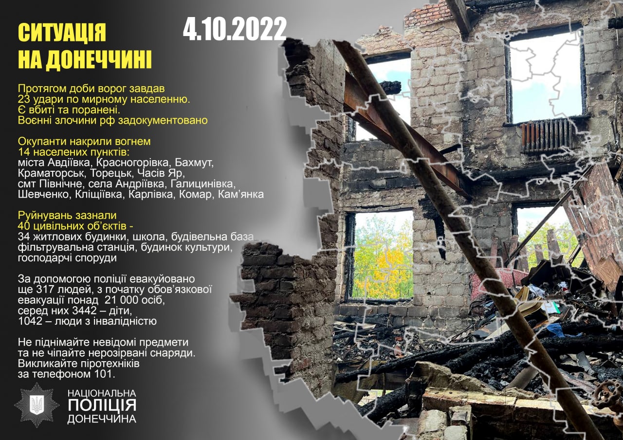 За допомогою поліції евакуйовано ще 317 людей, з початку обов’язкової евакуації понад 21 000 осіб, серед них 3442 – діти, 1042 – люди з інвалідністю.