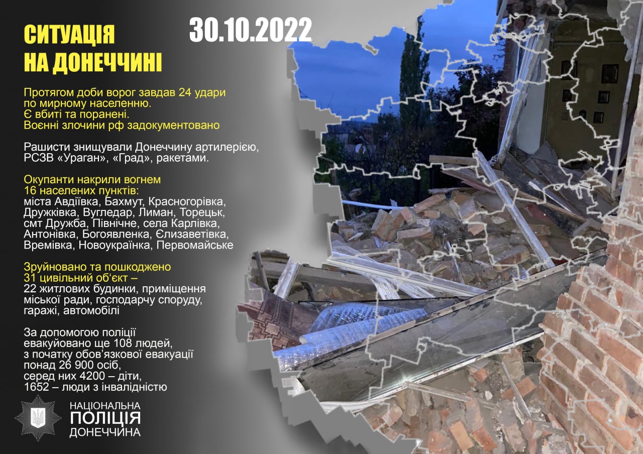 Протягом доби ворог завдав 24 удари по мирному населенню. Є вбиті та поранені. Воєнні злочини рф задокументовано.