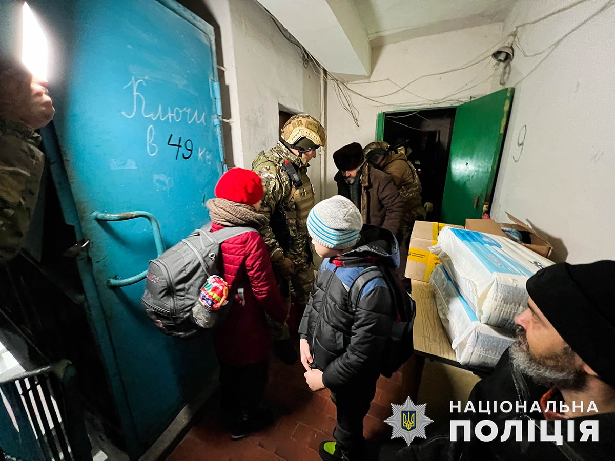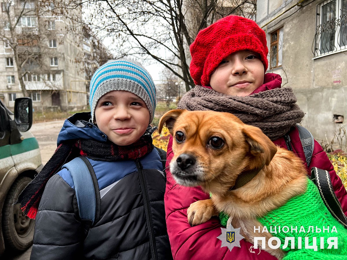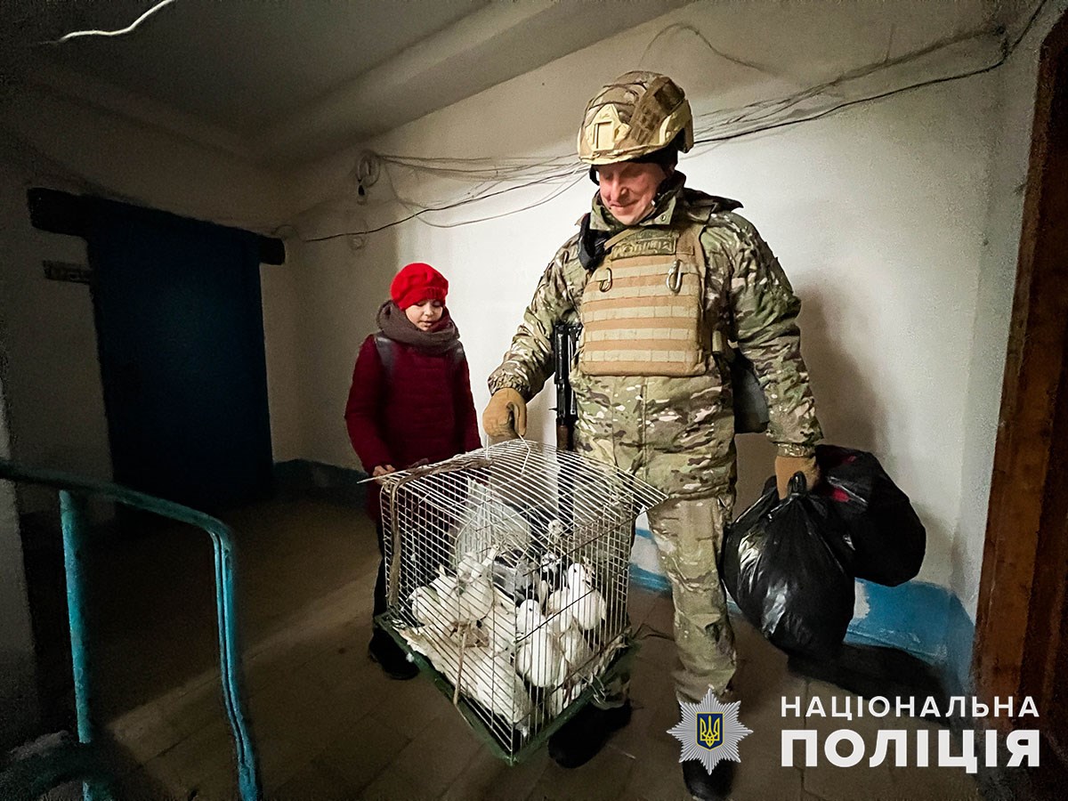 Квартира на 9 поверсі, лише 2 градуси тепла в кімнатах і постійні вибухи навколо – в таких умовах мешкала сім’я в зоні бойових дій. В одній кімнаті жили двоє дітей, тато з інвалідністю, маломобільний дідусь і бабуся, мами у малечі немає. Завдяки тривалим вмовлянням поліцейських дорослі погодились евакуюватися. 11-річний Влад та 12-річна Вероніка не хотіли їхати без домашніх улюбленців – двох собак і голубів, тож забрали і їх.