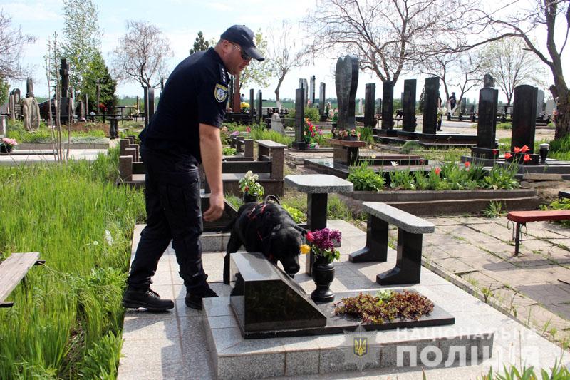 Поліцейські кінологи, вибухотехніки спільно з саперами ДСНС перевірили на відсутність небезпечних предметів цвинтарі на території регіону. Особлива увага приділялася кладовищам, розташованим поблизу лінії розмежування – Ясинуватський та Бахмутських район, Авдіївка, Торецьк та Мар’їнка.
