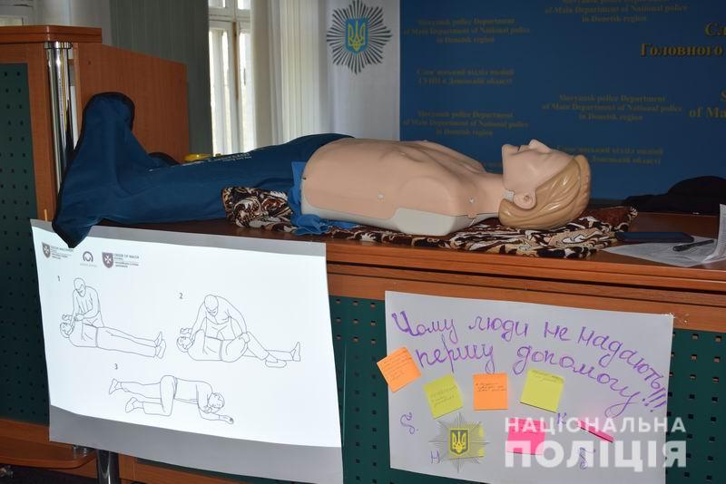 Тренінг був організований співробітницею слов'янської поліції Мар'яною Ткаченко, яка раніше у складі групи з 16 українських правоохоронців проходила курси з кваліфікованої домедичної допомоги у Польщі. Після складання екзамену, який приймали досвідчені практикуючі медики, Мар'яна першою серед поліцейських Донеччини отримала сертифікат міжнародного зразка.
