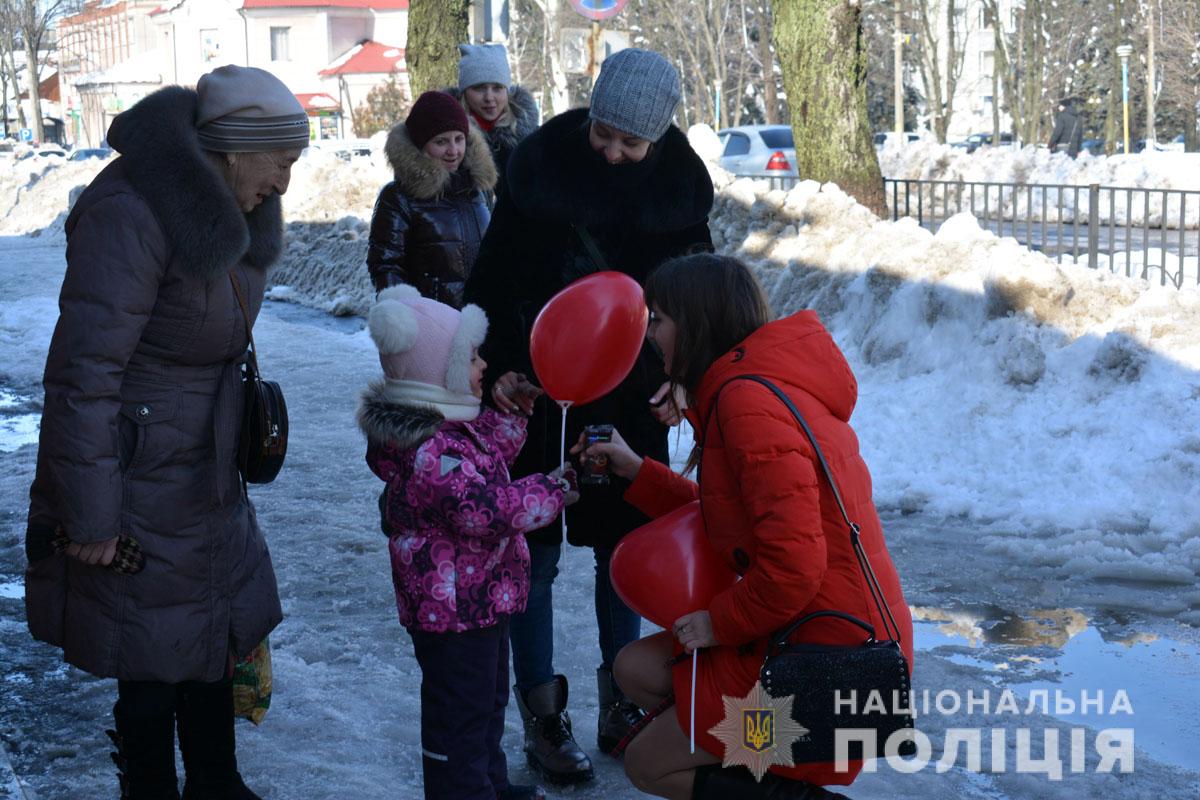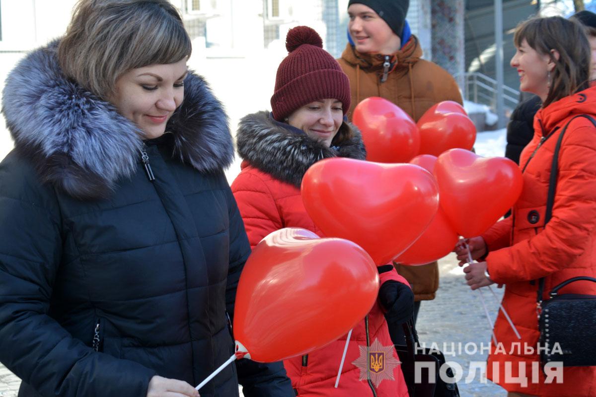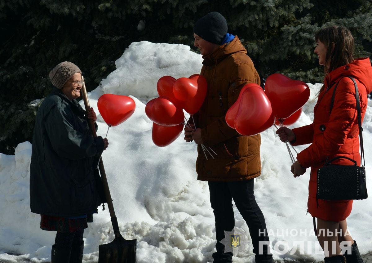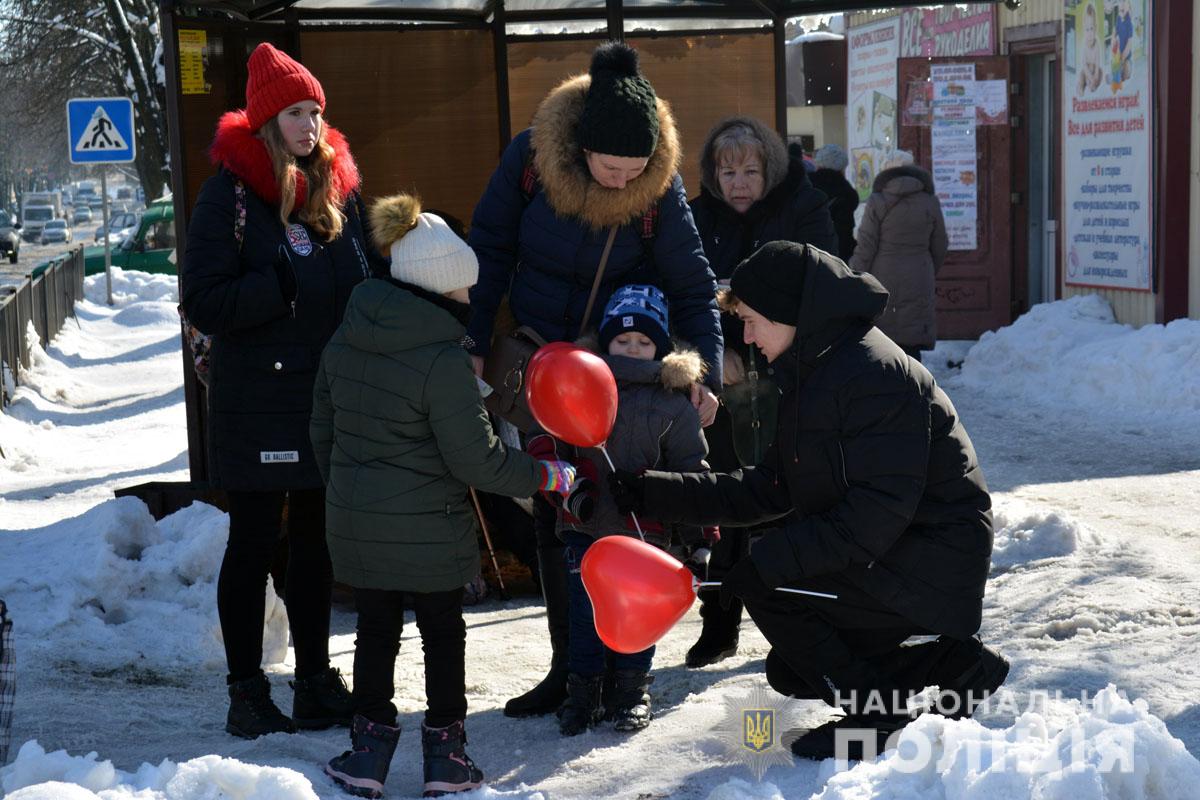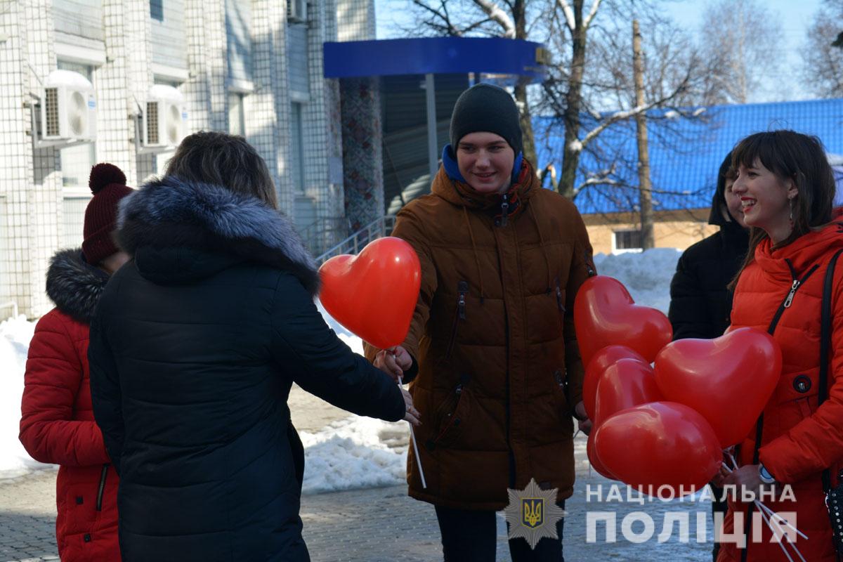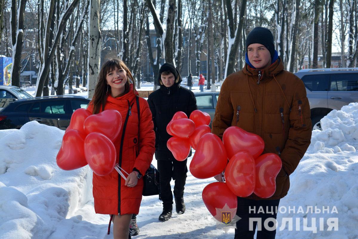 Правоохоронці разом з учасниками «Ліги майбутніх поліцейських» ненадовго стали помічниками Святого Валентина. Вони подарували людям повітряні кульки та святковий настрій.
