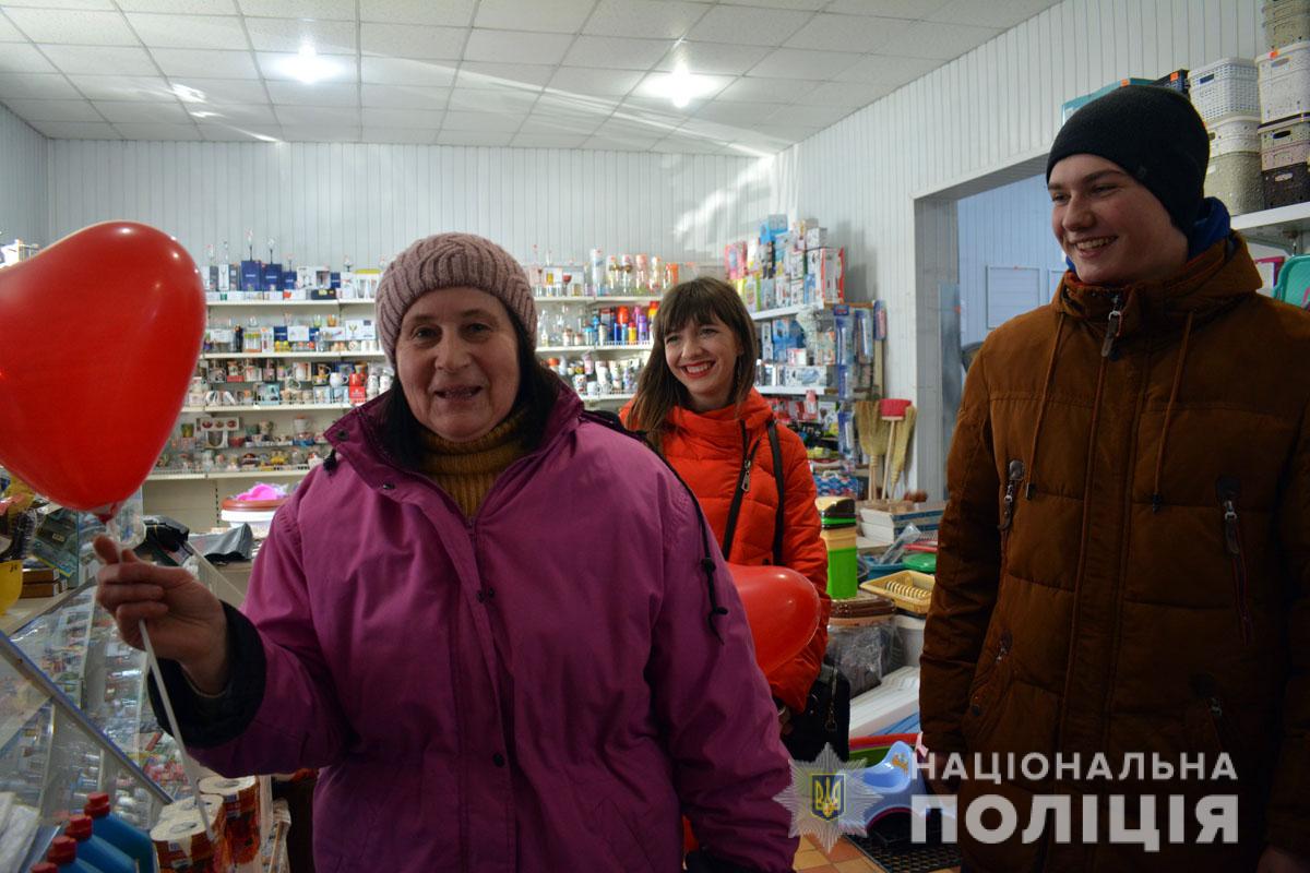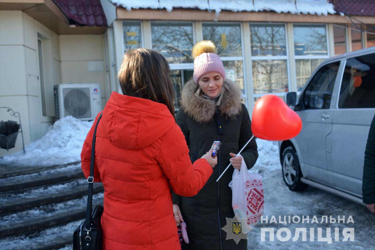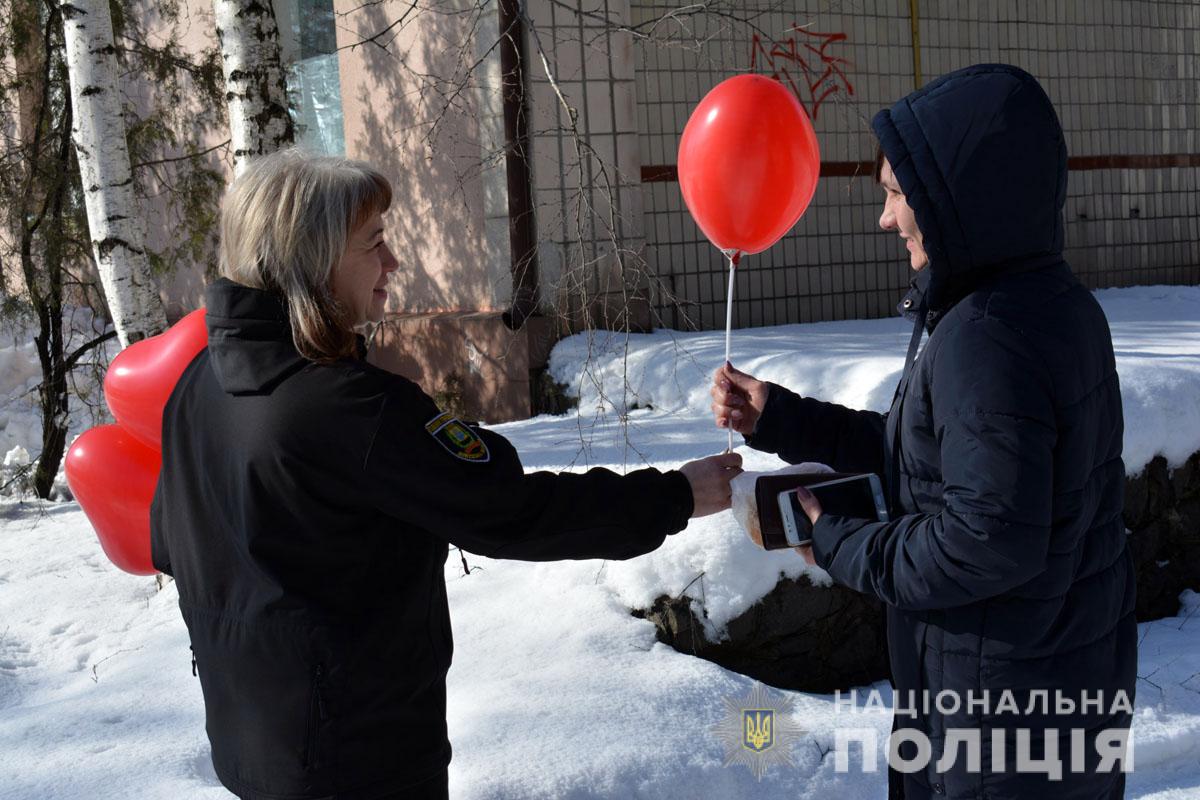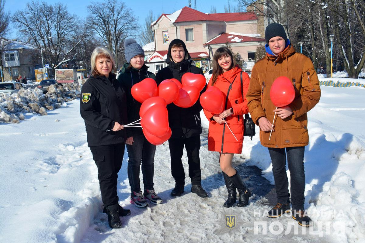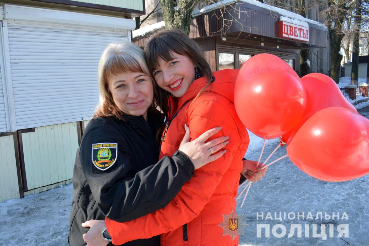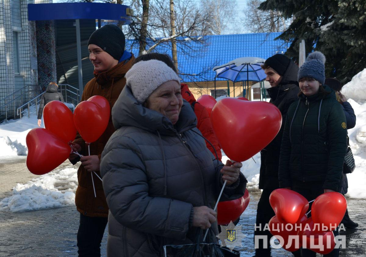 Правоохоронці разом з учасниками «Ліги майбутніх поліцейських» ненадовго стали помічниками Святого Валентина. Вони подарували людям повітряні кульки та святковий настрій.