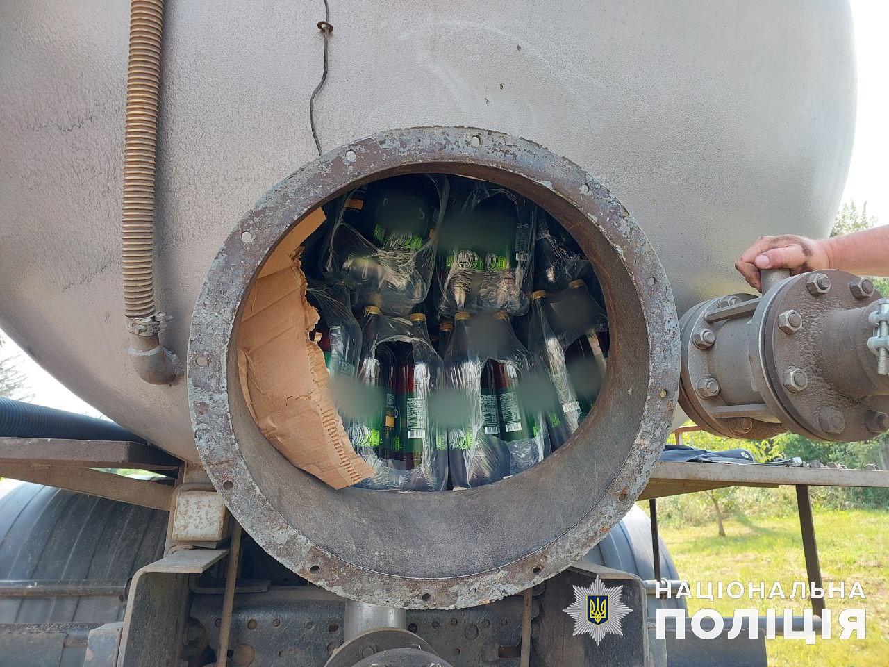 Ще один факт незаконного транспортування алкогольної продукції викрили поліцейські Донеччини спільно з працівниками патрульної поліції Краматорська у селі Майдан Краматорського району. 39-річний водій у цистерні асенізаційної машини перевозив алкогольні напої. Поліція вилучила понад 9000 літрів алкоголю майже на 500 тисяч гривень. За незаконне транспортування підакцизних товарів з метою збуту відкрито кримінальне провадження (ч.1 ст. 204 КК України).