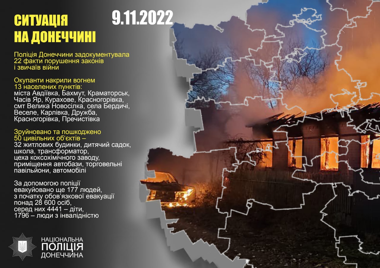 Поліція Донеччини задокументувала 22 факти порушення законів і звичаїв війни