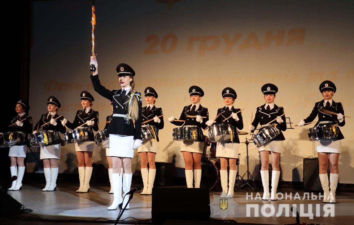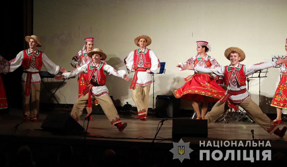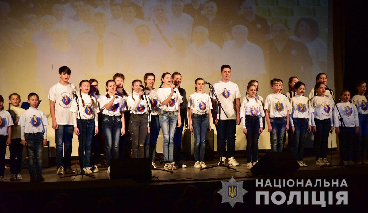 Творчі колективи Приазовського державного технічного університету та Маріупольського державного університету, поліцейський оркестр обласного главку та ансамбль барабанщиць створили своїми яскравими виступами особливо піднесений настрій у концертному залі.