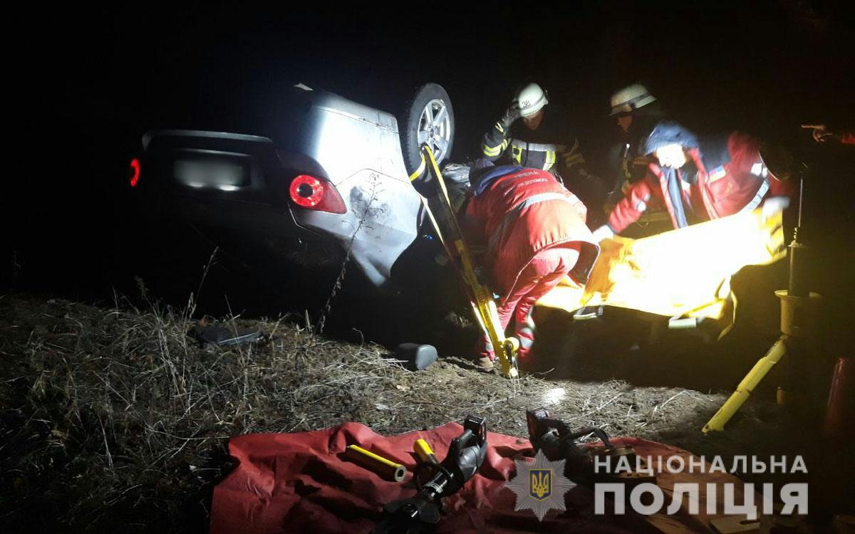 Автомобіль «Шевроле» з трьома людьми всередині з’їхав з дороги та перекинувся. Внаслідок отриманих травм один пасажир помер на місці, інший госпіталізований. Водійка, за результатами медогляду, перебувала в стані алкогольного сп’яніння.