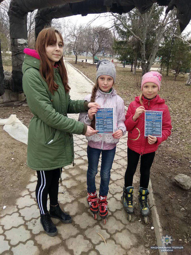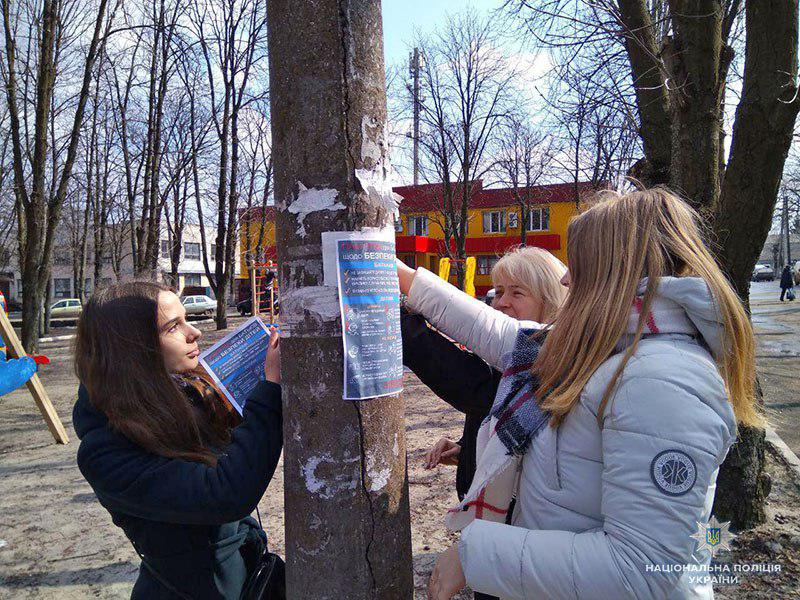 Інформаційні листівки та банери розповсюджували учасники «Ліги майбутніх поліцейських». Молодь підходила до дітей та їх батьків і нагадувала їм, що потрібно робити якщо до будинку намагаються потрапити сторонні особи, чому потрібно обходити стороною гаражі та темні провулки і чому не можна гратися біля доріг та зруйнованих будівель.