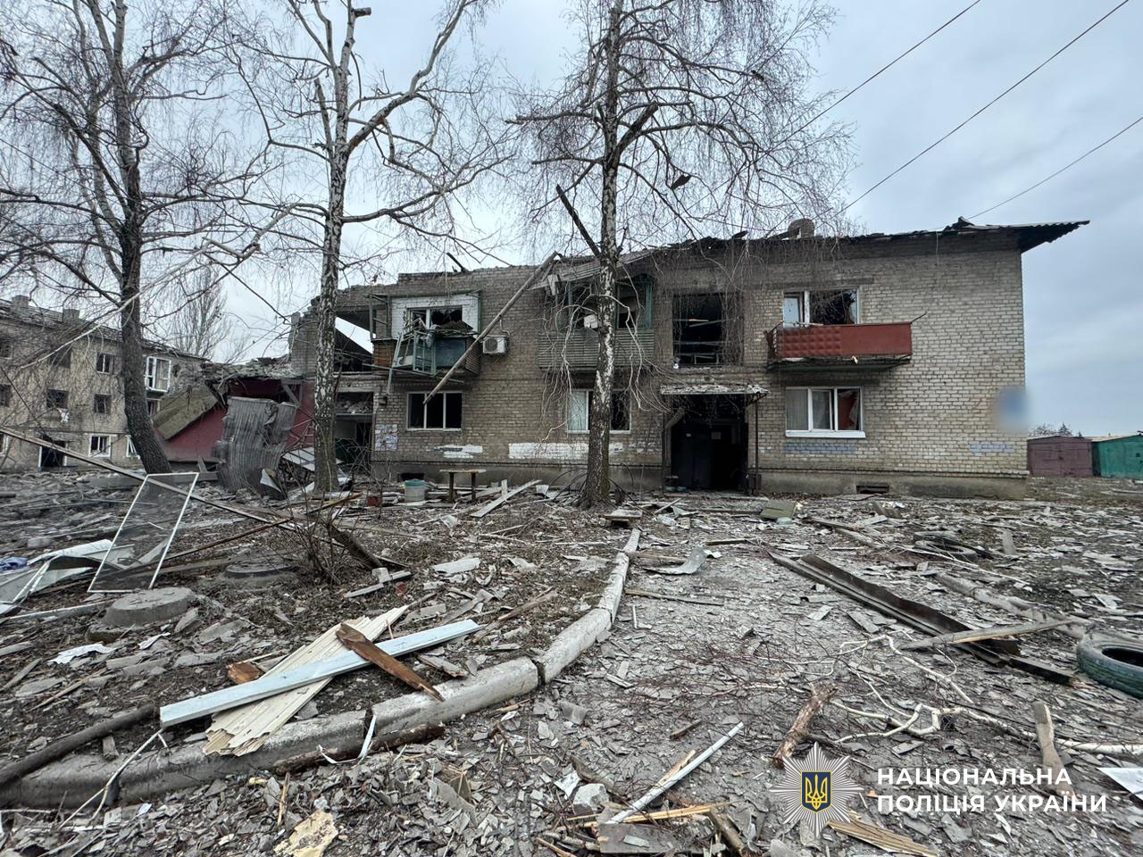 Покровськ росіяни атакували 8 разів: авіабомбами «ФАБ-250», РСЗВ «Смерч», дронами, артилерією. Поранено двох цивільних осіб, руйнувань зазнали 7 багатоквартирних будинків, 2 лікарні, церкву, цивільну вантажівку.