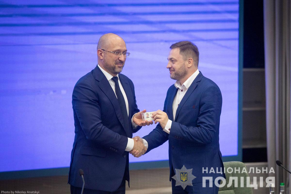 Прем’єр-міністр України Денис Шмигаль, своєю чергою, привітав Дениса Монастирського та вручив посвідчення міністра внутрішніх справ України.
