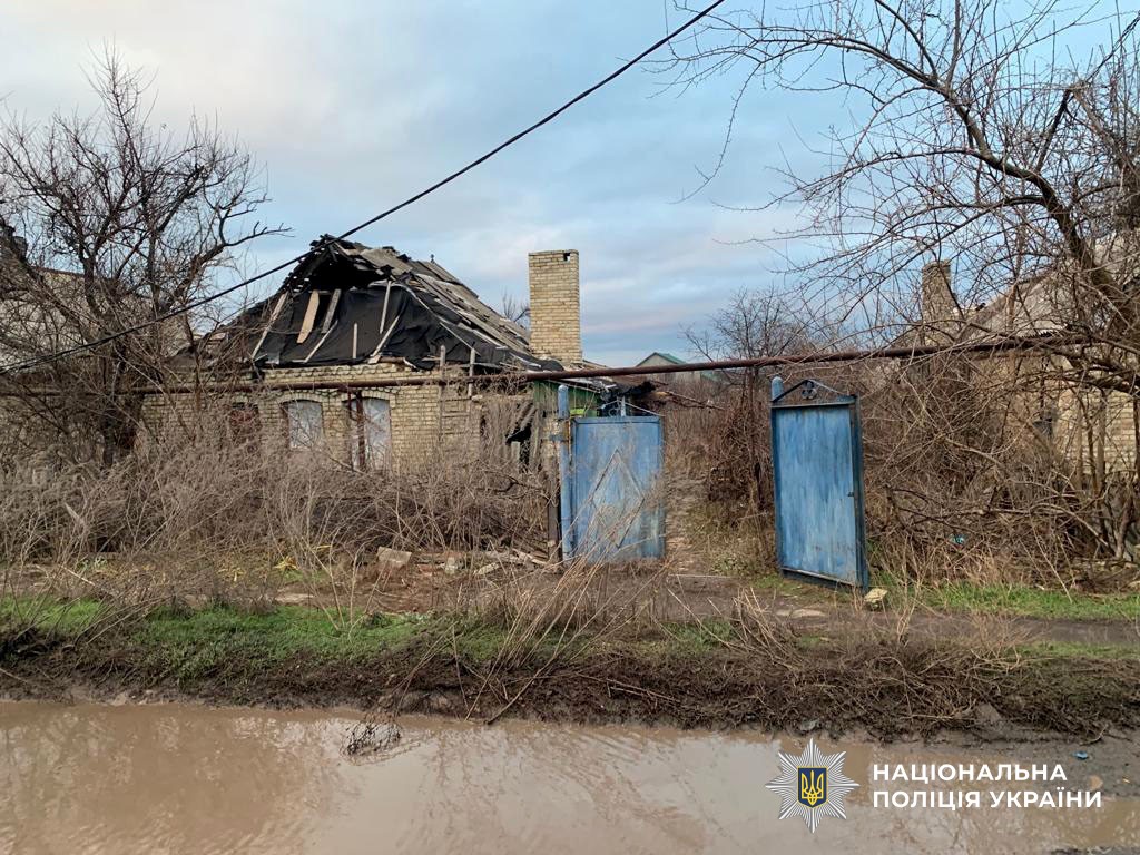Пошкоджено 10 цивільних об’єктів – 6 житлових будинків, адмінбудівлю поліції, автомобілі, ЛЕП.