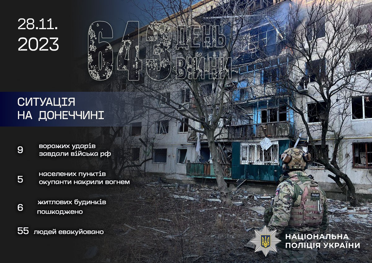 Протягом доби армія рф здійснила 9 атак на цивільне населення Донеччини