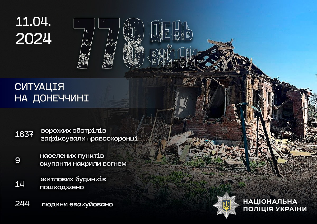 Крім того, в ніч на 11 квітня російські війська вдарили по Селидовому чотирма ракетами із ЗРК «С-300». Є пошкодження в промисловій зоні. За попередніми даними, люди не постраждали.