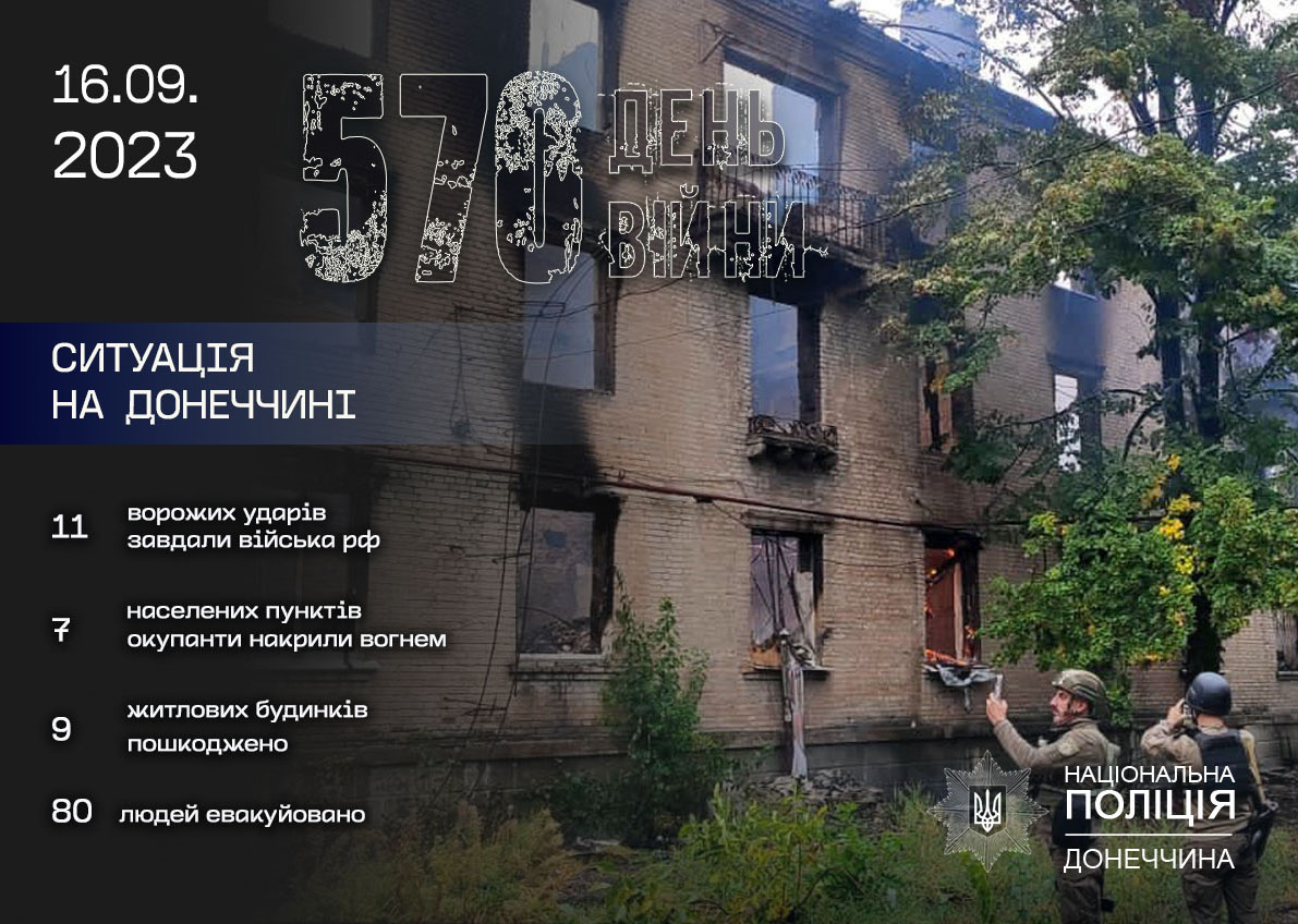Протягом минулої доби ворог 11 разів атакував Донеччину - поліція зафіксувала наслідки російських ударів