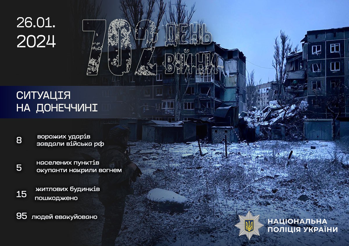За допомогою поліції евакуйовано ще 95 людей, з початку обов’язкової евакуації – 104 571 особу, серед них 14 008 – діти, 5 308 - люди з інвалідністю.