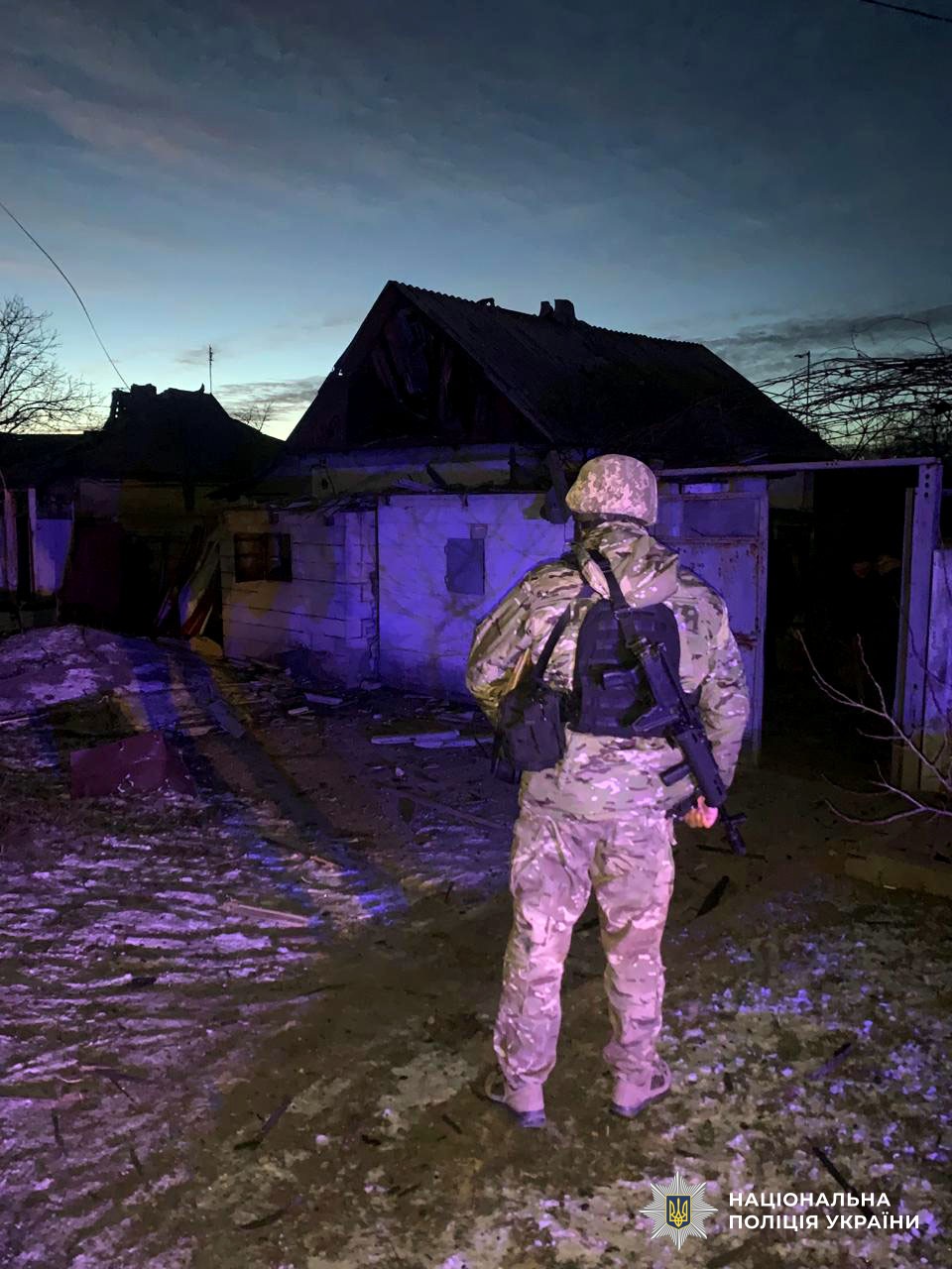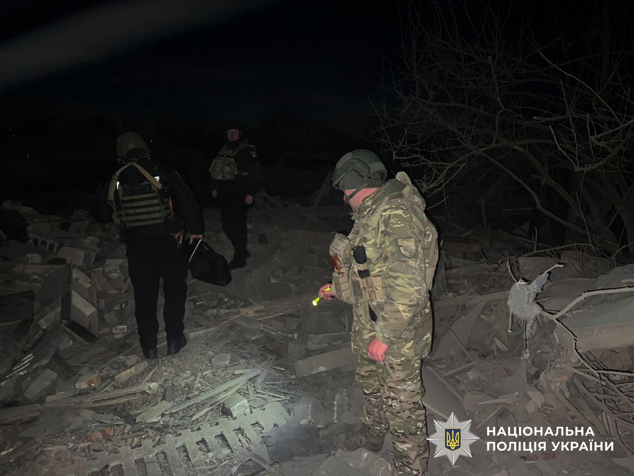На місці працювали вибухотехніки, парамедики та слідчо-оперативна група. Разом з рятувальниками поліцейські розбирали завали, допомагали людям. Наразі поліція продовжує виявляти та фіксувати наслідки обстрілу.