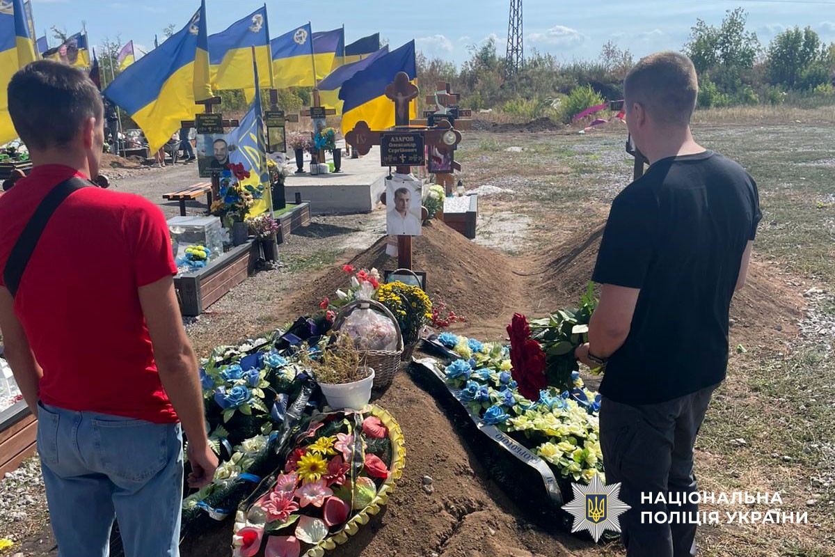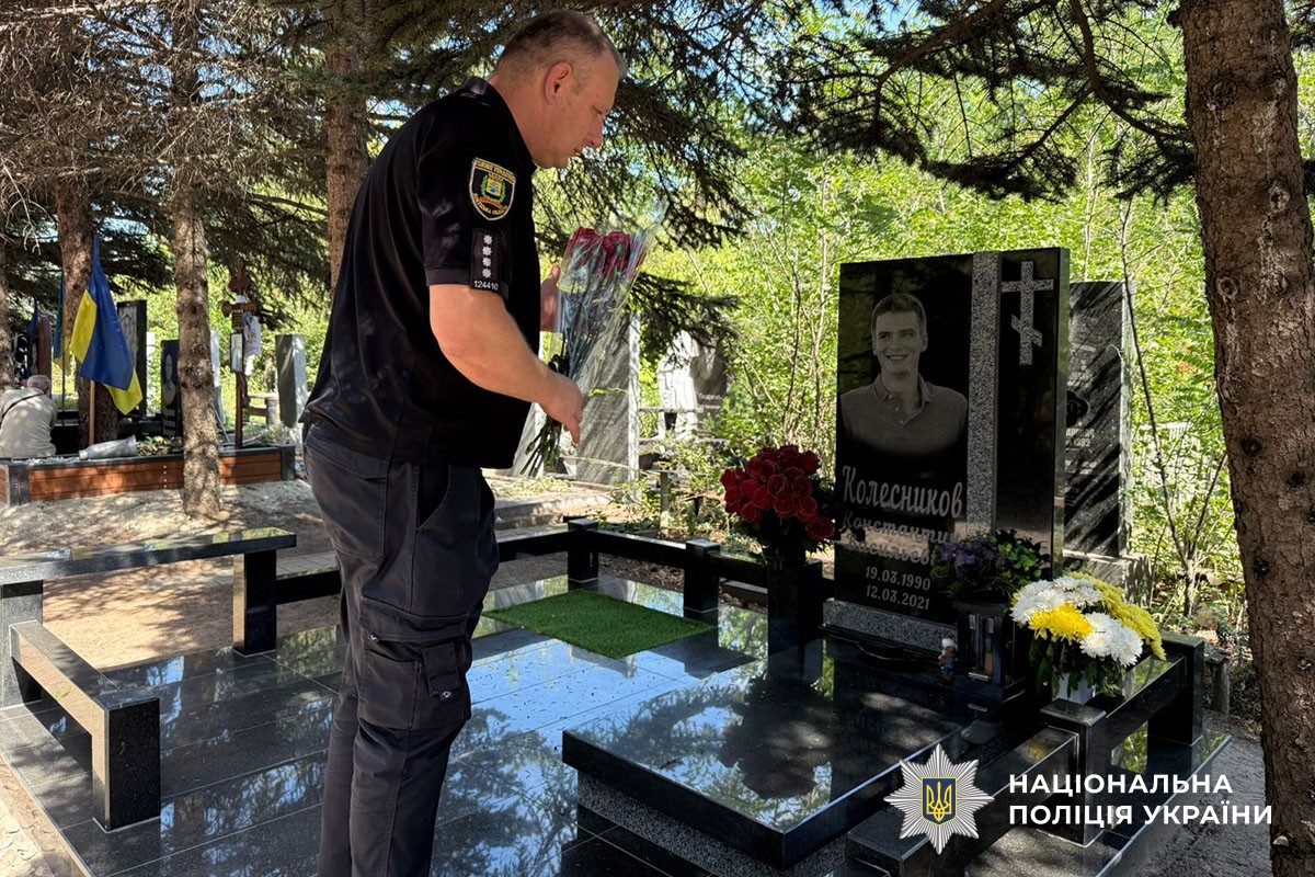 У День пам’яті захисників України поліцейські Донеччини поклали квіти на місцях поховання побратимів, а також приїхали підтримати їхні сім’ї, які втратили найдорожчих людей.