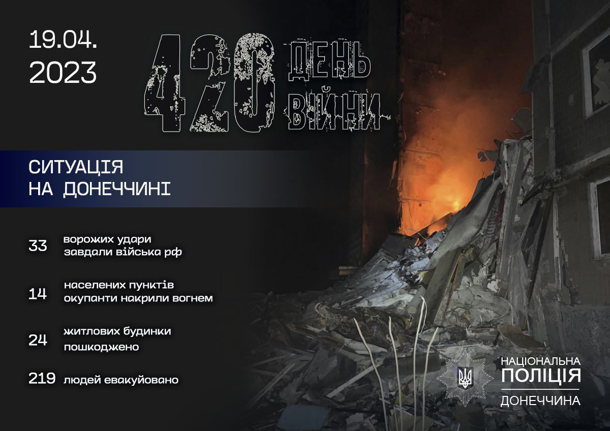 З артилерії армія рф накрила Українськ. Поранено 8 людей, руйнувань зазнали три багатоквартирні будинки та 18 торговельних павільйонів. Внаслідок ворожих атак маємо пораненого в Новокалиновому.