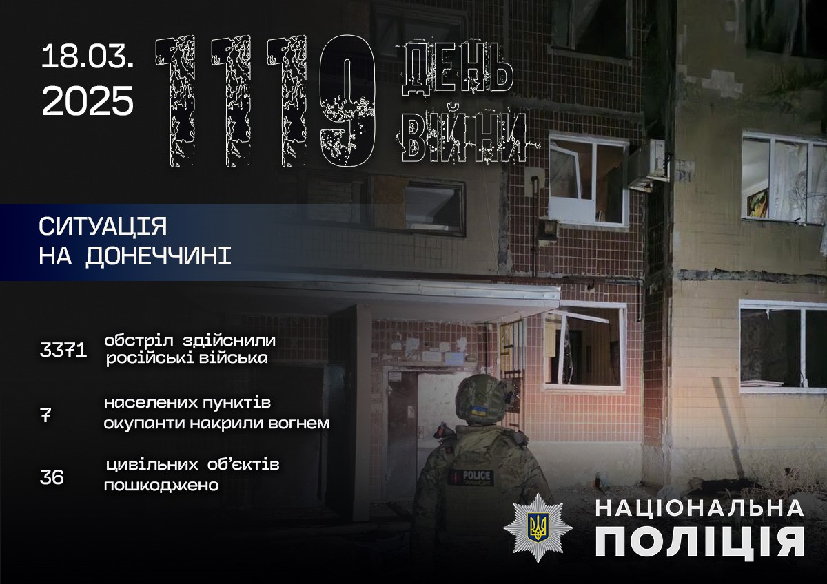 Протягом доби поліція зафіксувала 3 371 ворожий удар по лінії фронту та житловому сектору.