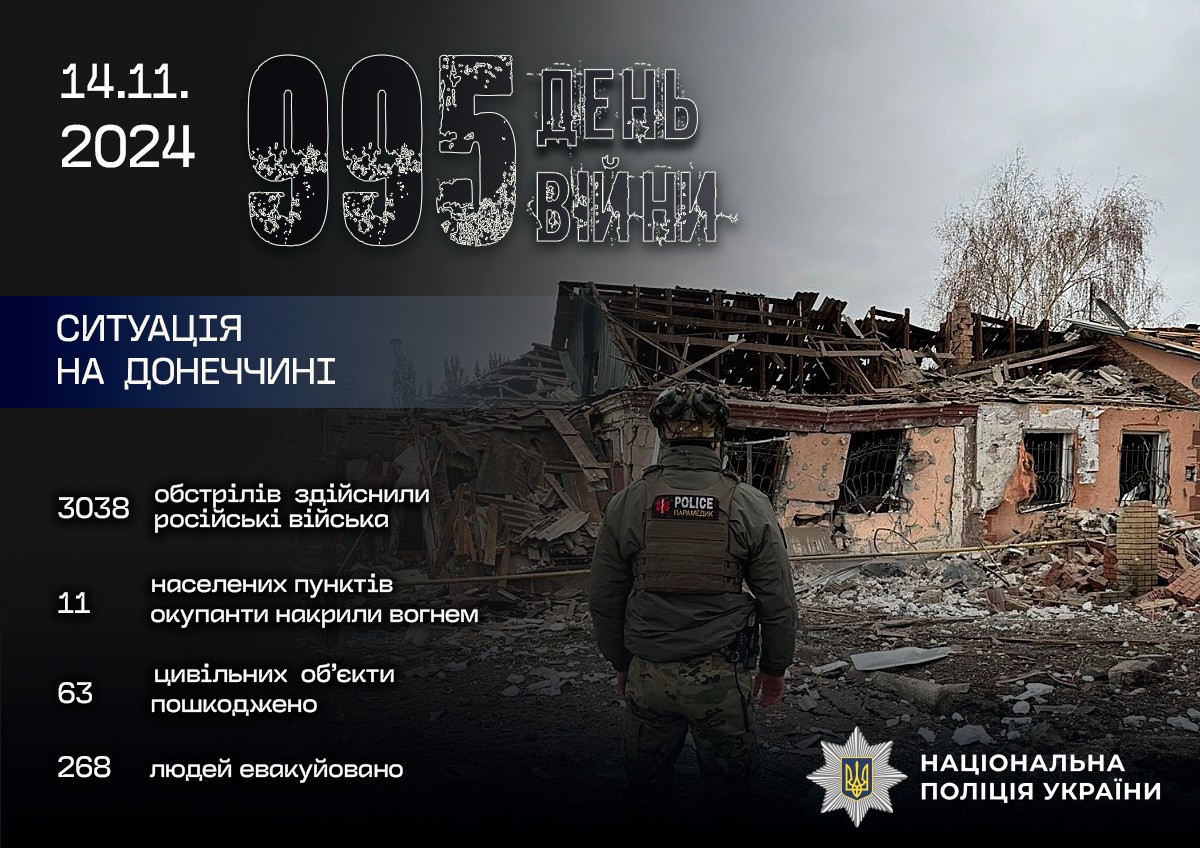 Поліція зафіксувала 3 038 ворожих обстрілів по лінії фронту та житловому сектору.
