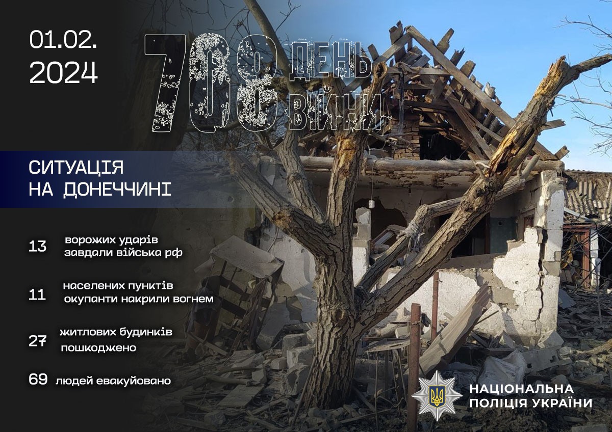 На Торецьк окупанти скинули керовану авіабомбу КАБ-500. Двоє цивільних осіб отримали поранення. Руйнувань зазнали 6 багатоквартирних будинків, амбулаторія, котельня.