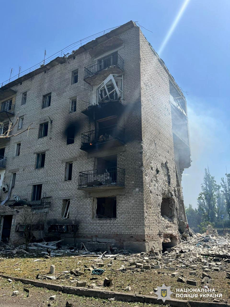 Торецьк окупанти атакували трьома бомбами «КАБ-250» та артилерією – є вбита та поранена цивільні особи. Пошкоджено 2 адмінбудівлі, 4 багатоквартирних і 5 приватних будинків.