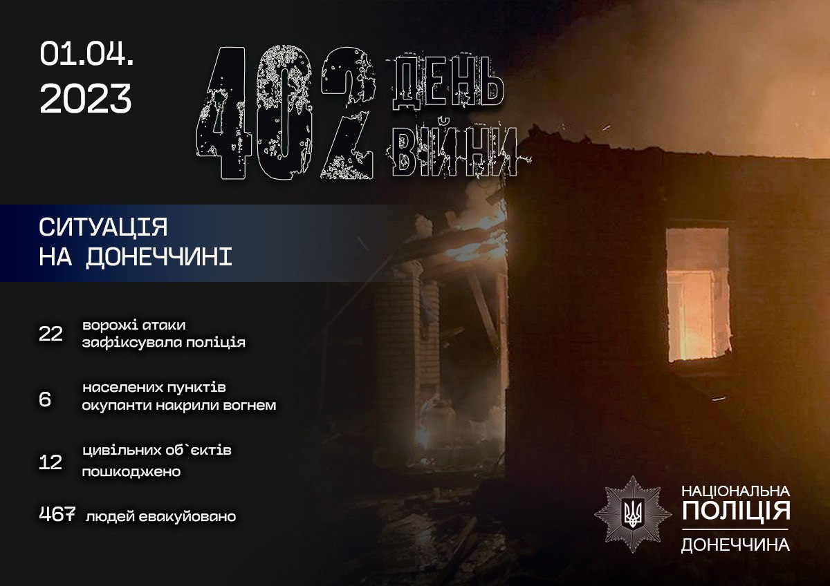 Поліція зареєструвала 22 порушення законів та звичаїв війни з боку окупаційних військ. Внаслідок воєнних злочинів рф є вбиті й травмовані.
