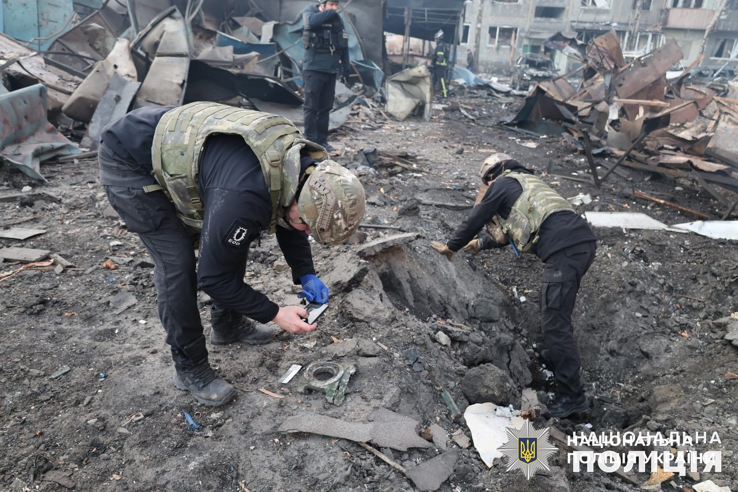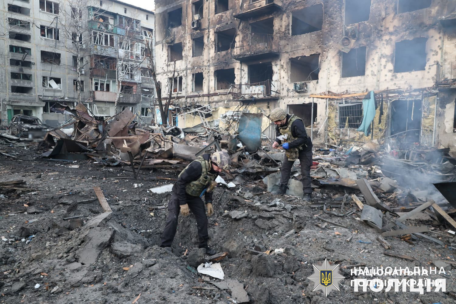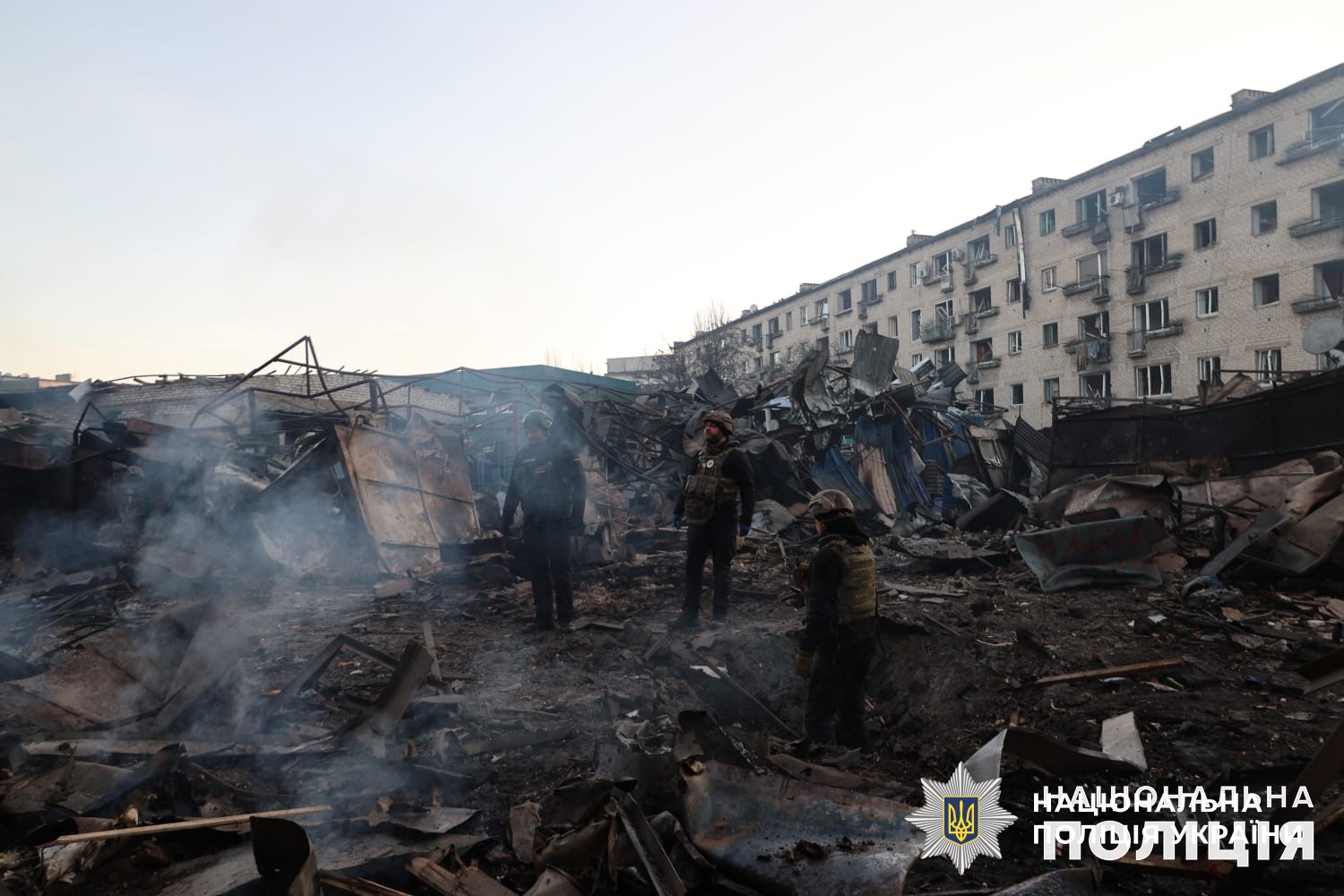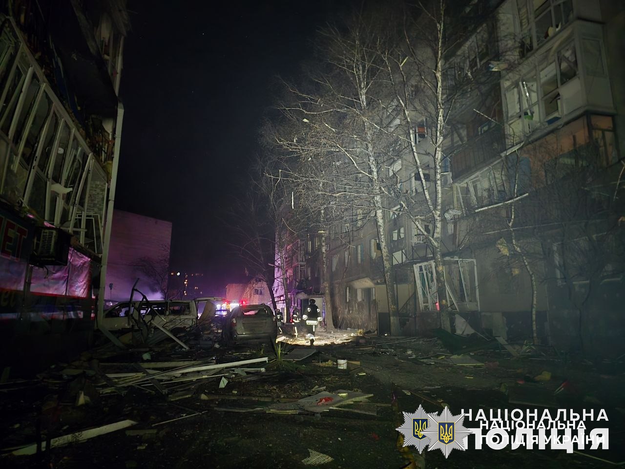 Понад 10 годин на місцях влучань працюють вибухотехніки, слідчо-оперативні групи поліції та всі профільні служби. Триває ліквідація пожежі, розбір завалів та евакуація людей.