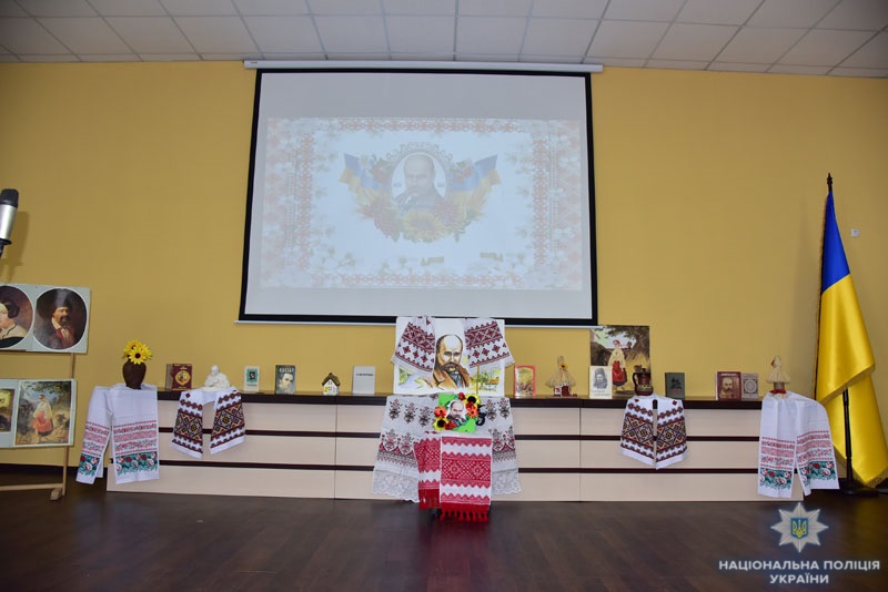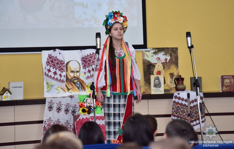 Співробітники поліції прифронтового регіону долучилися до всеукраїнських заходів на честь річниці з дня народження Тараса Шевченка. Участь у заході взяли також представники Всеукраїнського товариства «Просвіта», активісти «Ліги майбутніх поліцейських» з Мангушу та Комишуватого, хор Маріупольського музичного училища.