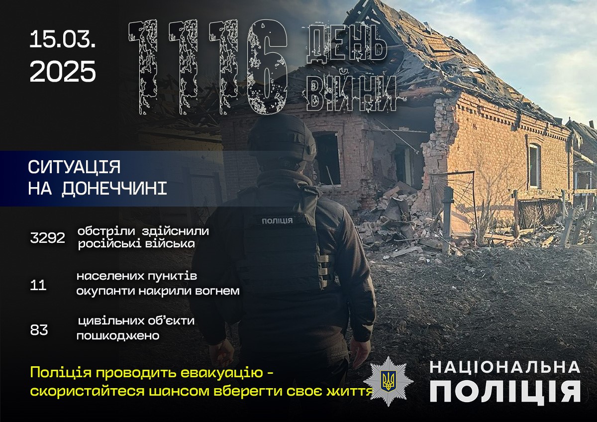 Протягом доби поліція зафіксувала 3 292 ворожих удари по лінії фронту та житловому сектору.