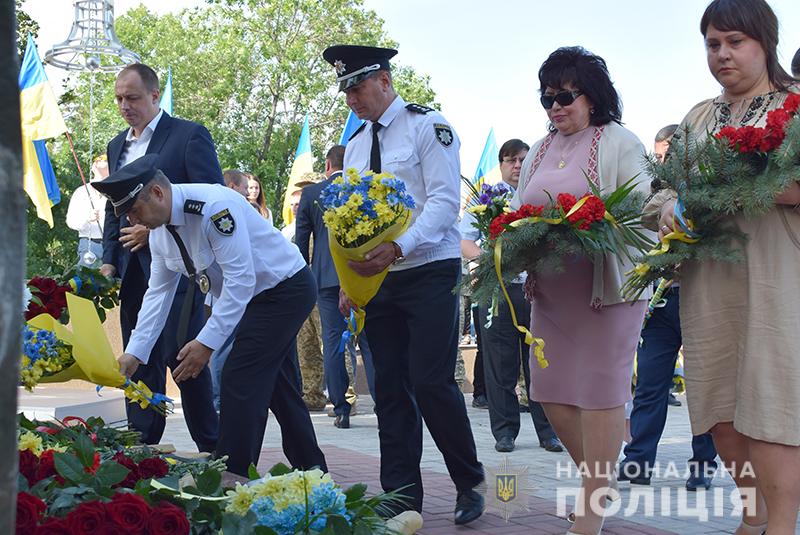 Поліцейські приєдналися до відзначення головного державного свята. У Маріуполі та Слов’янську керівники поліції Донеччини поклали квіти до пам’ятників на честь загиблих за свободу та незалежність України.