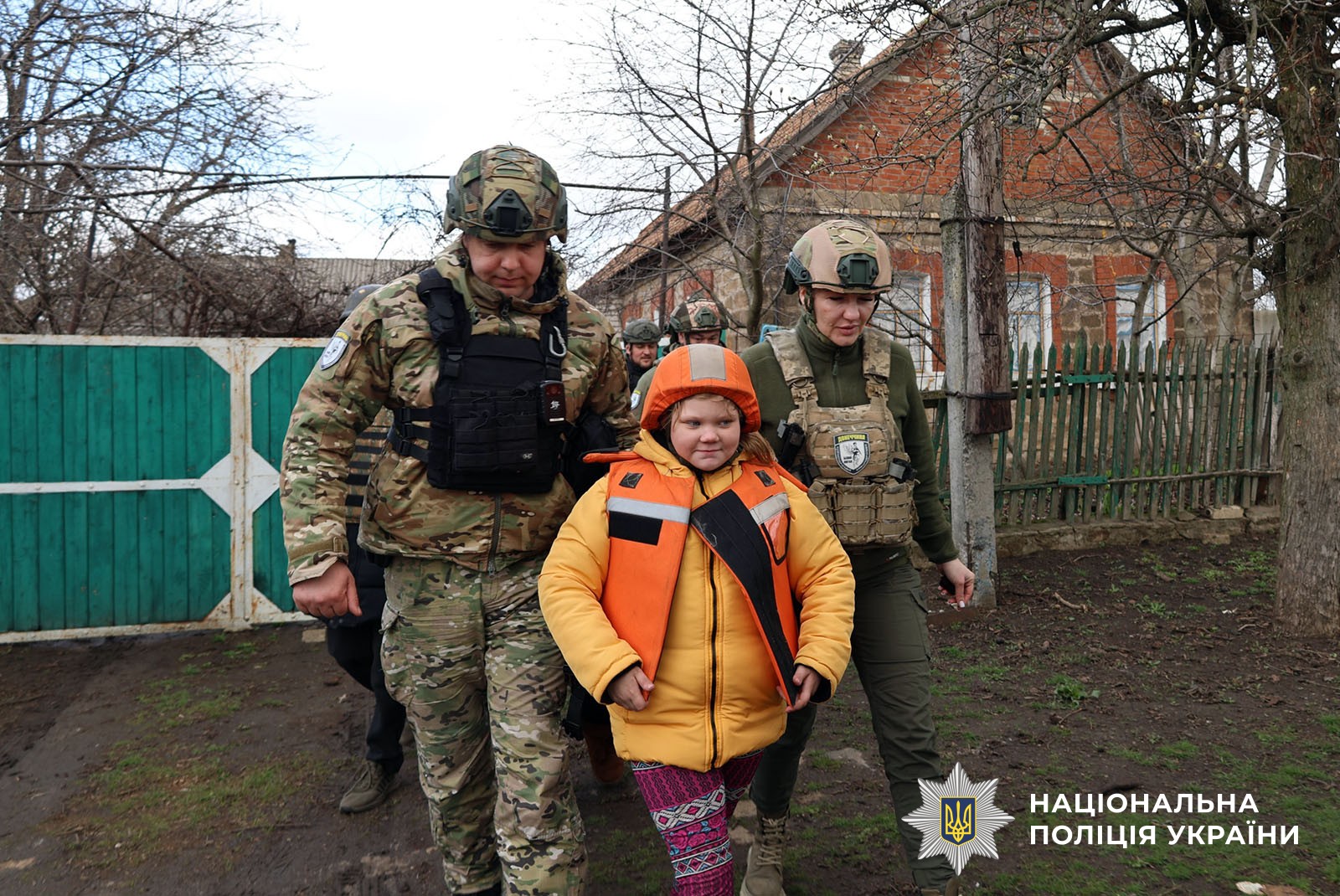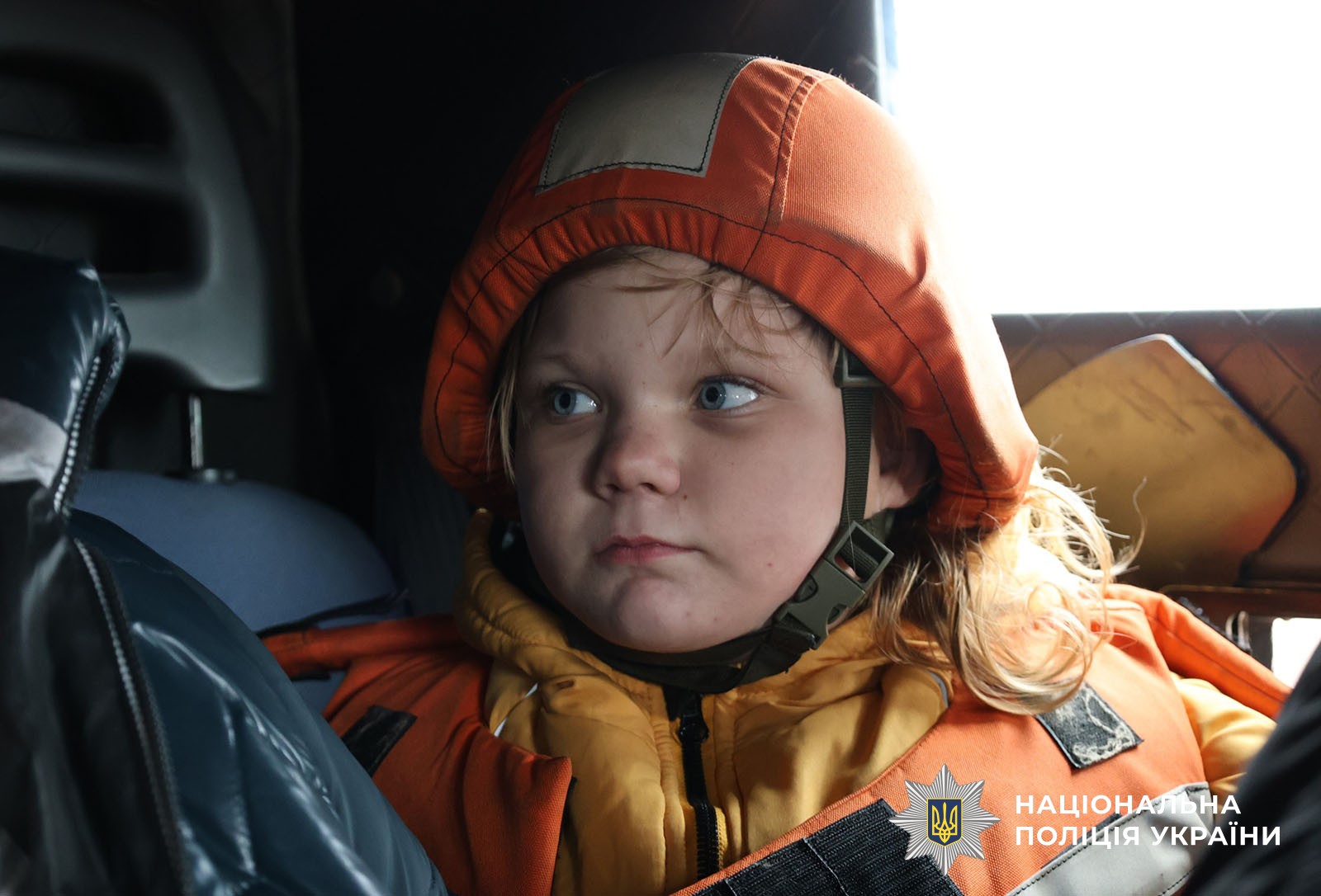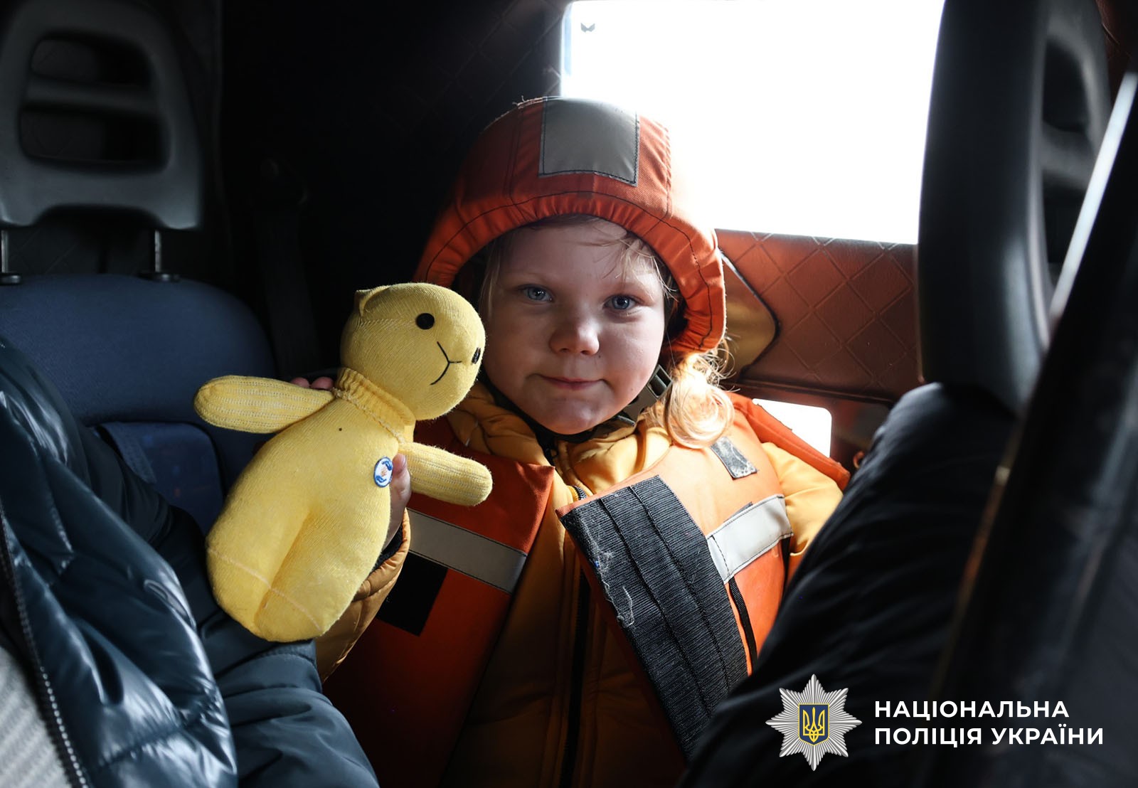 Поліцейські доставили дівчинку разом з мамою та старшим братом Денисом до більш безпечного місця, звідки вони вирушать на Дніпропетровщину.