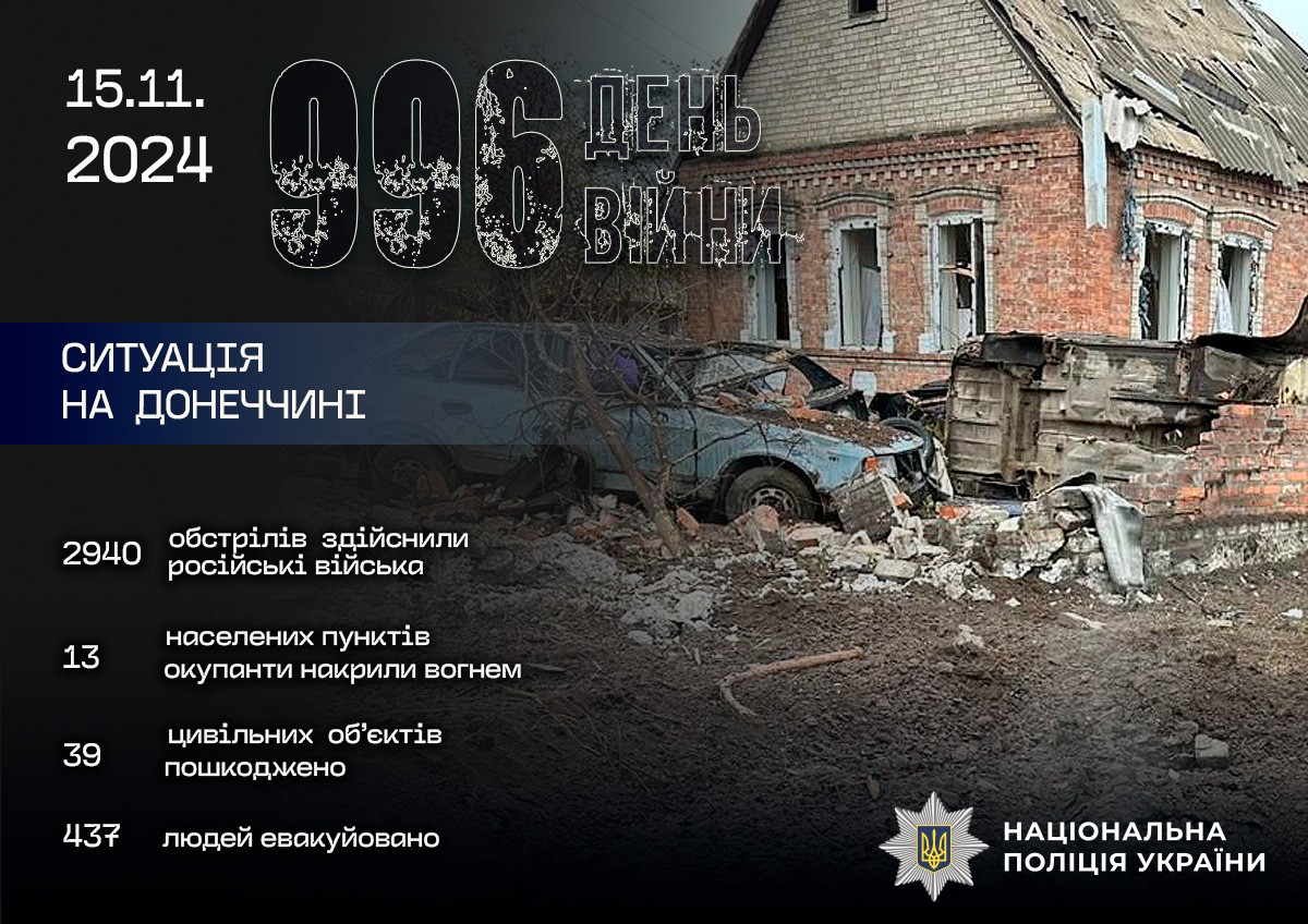 Крім того, отримано інформацію про цивільних осіб, які постраждали раніше, 13 листопада: у Ганнівці людина загинула від удару російського дрону, в Кураховому – четверо поранених.