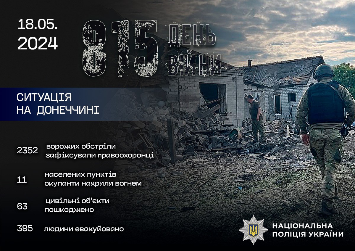 Протягом доби ворог обстріляв Донецьку область 2 352 рази. Загарбники били з авіації, РСЗВ «Град» та артилерії.