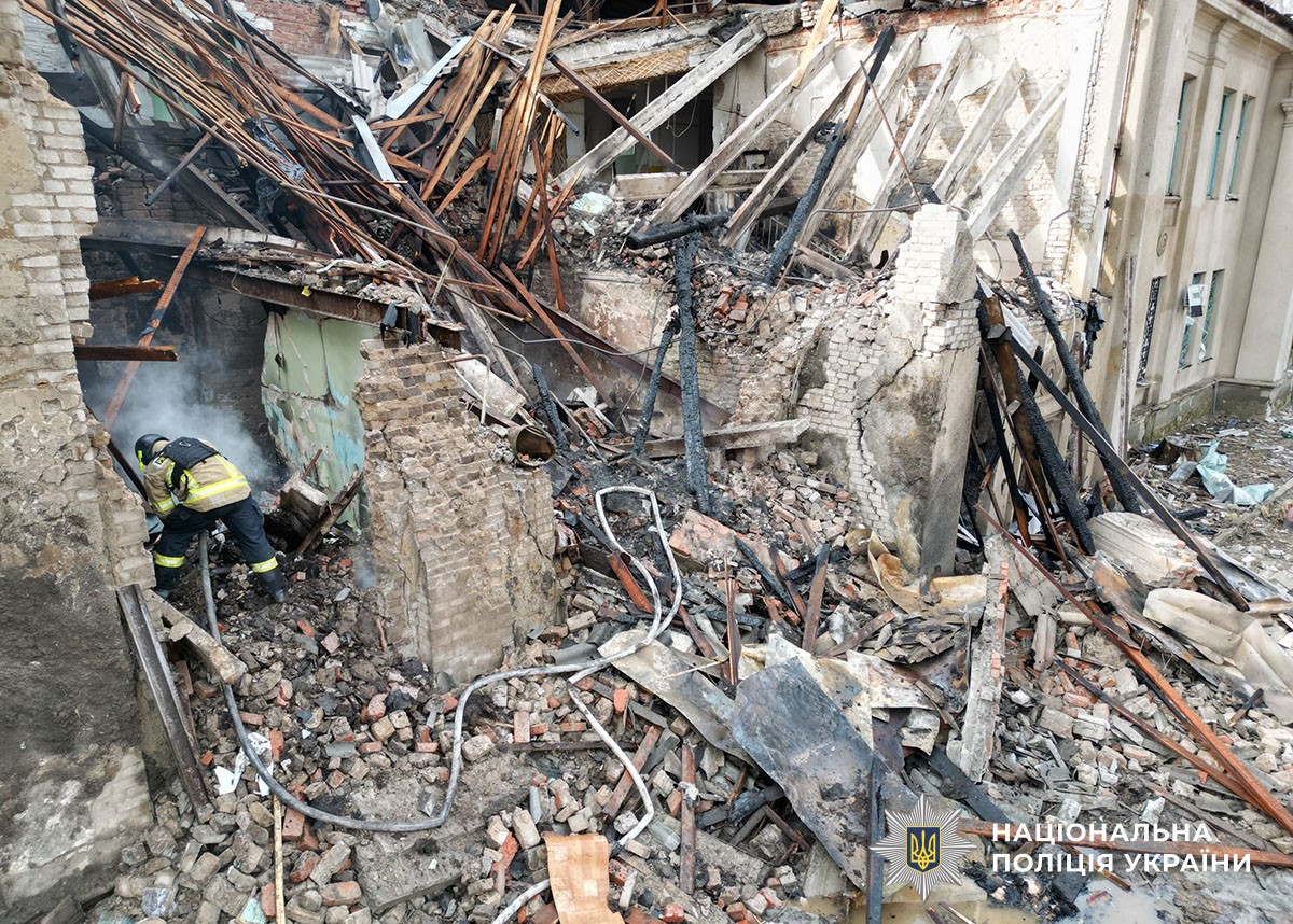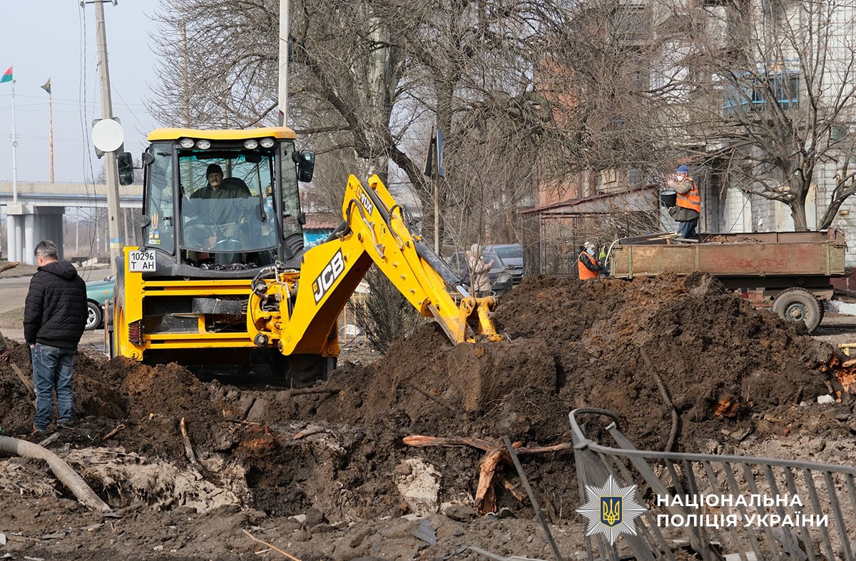 На місцях влучань працює поліція: оперативники, слідчі, криміналісти, вибухотехніки, парамедики. Правоохоронці збирають докази воєнного злочину, приймають заяви, встановлюють, кому потрібна допомога та евакуація.