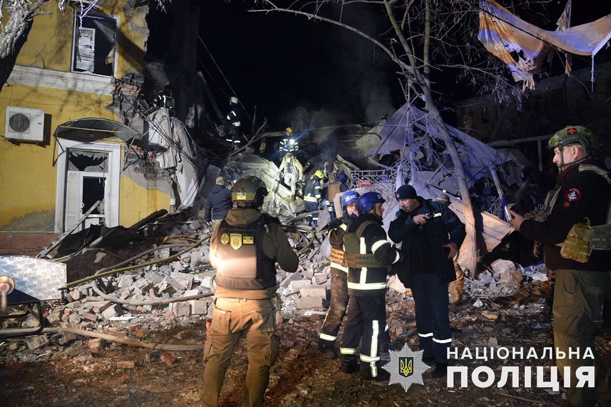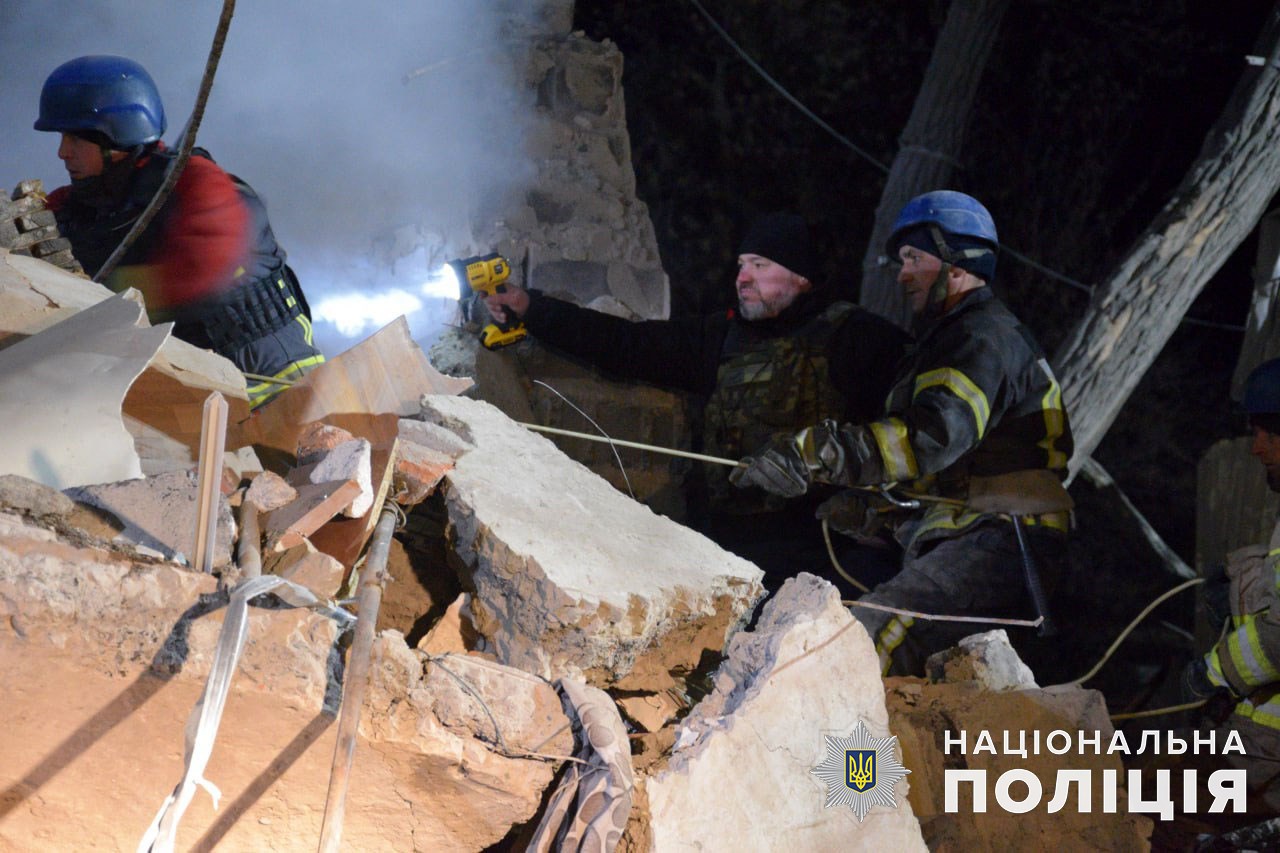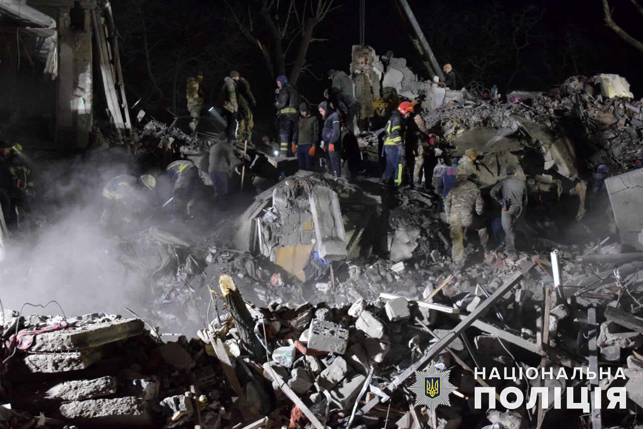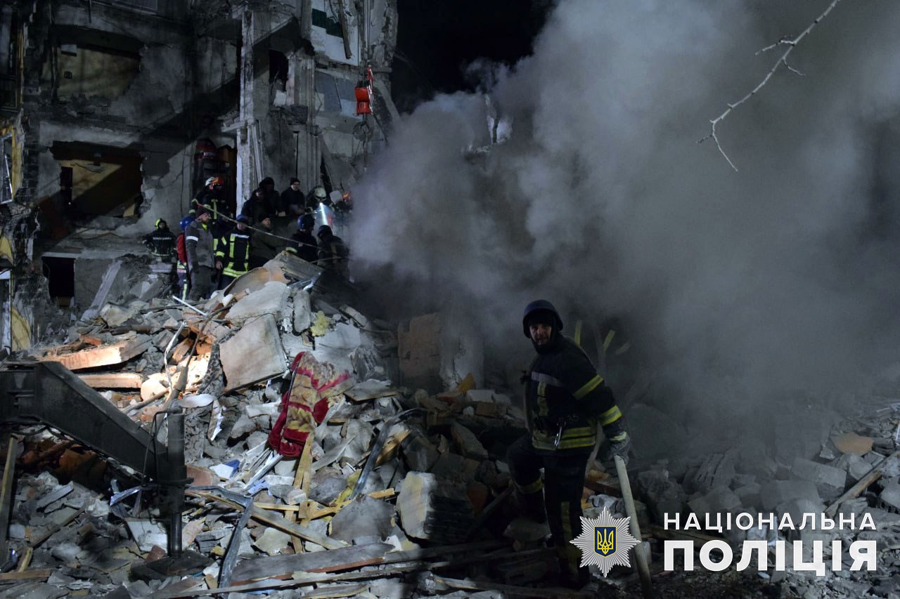 Встановлено, що в першому під’їзді будинку, який зруйнувала російська ракета, з 9 квартир люди жили в чотирьох. Загалом в 10 пошкоджених будинках проживали 63 людини. Евакуація рятує життя.