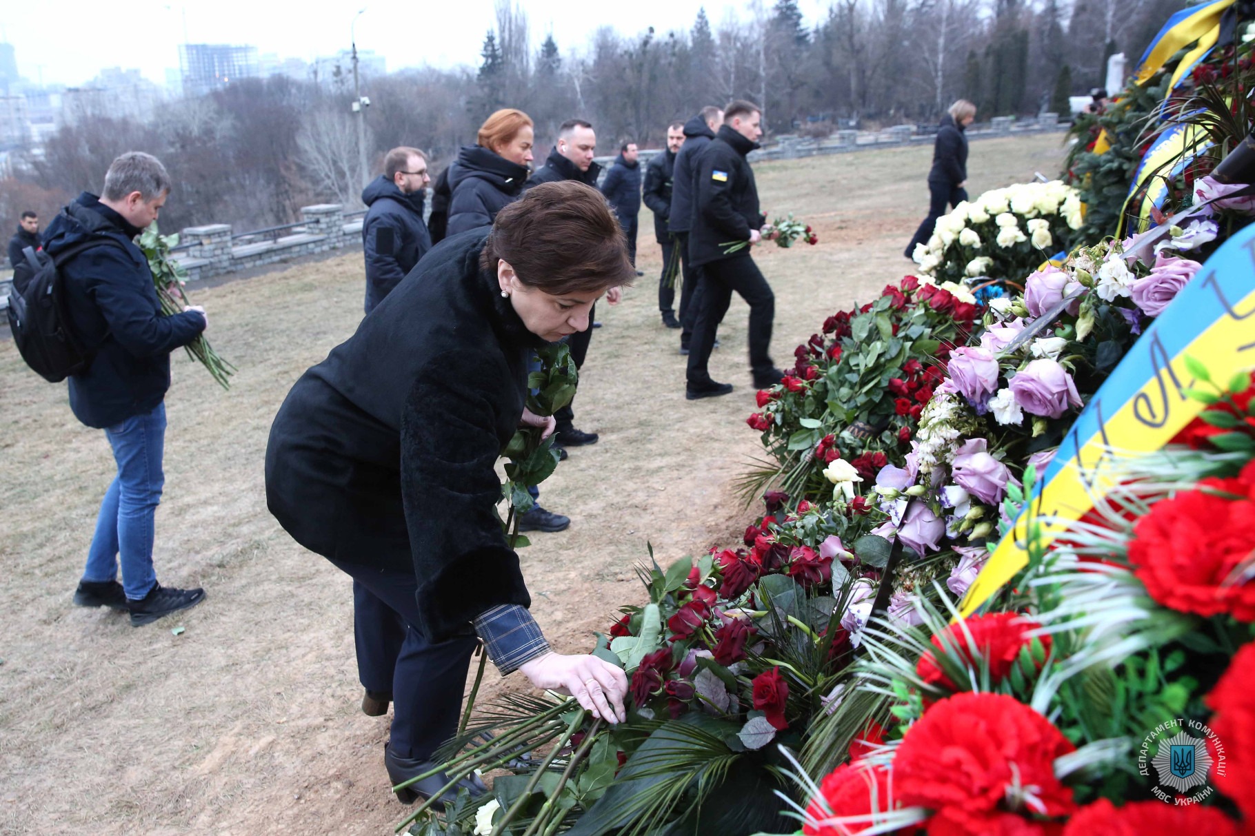 Вранці цього дня керівництво МВС України на чолі з виконувачем обов’язків міністра внутрішніх справ Ігорем Клименком й за участі в. о. державного секретаря МВС Інни Ящук, інших представників відомства, друзі та соратники, рідні загиблих, відвідали Байкове кладовище в Києві, де знайшли вічний спочинок Денис Монастирський, його колеги, й поклали до їхніх могил квіти, помолилися за упокій душ померлих і згадали добрим словом цих людей.