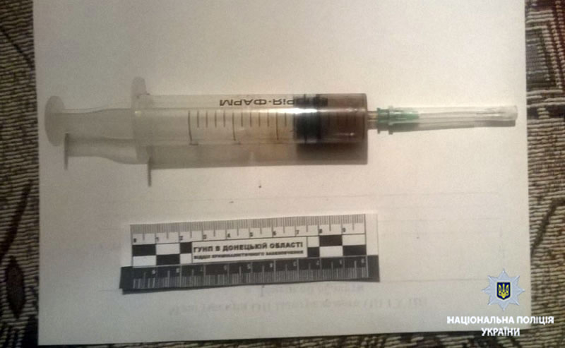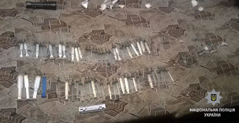 На час проведення обшуку у будинку знаходився один з «клієнтів» зловмисника, який тільки-но вжив дозу опію. На кухні розшуковці виявили та вилучили 2 медичних шприца, частково заповнені наркотичною рідиною, 7 півлітрових пляшок розчиннику, виварені продукти маку та посуд для виготовлення наркотичної речовини.