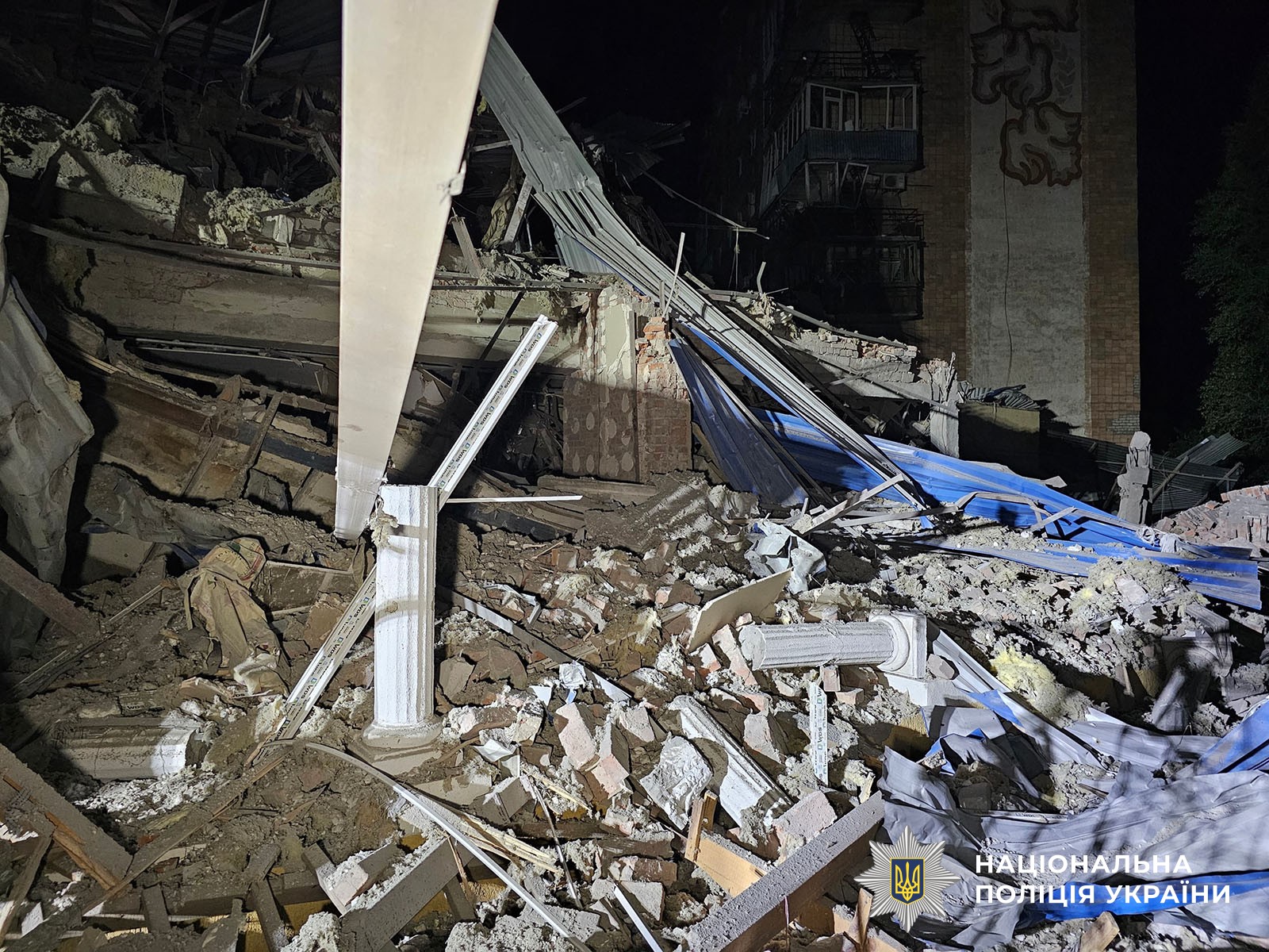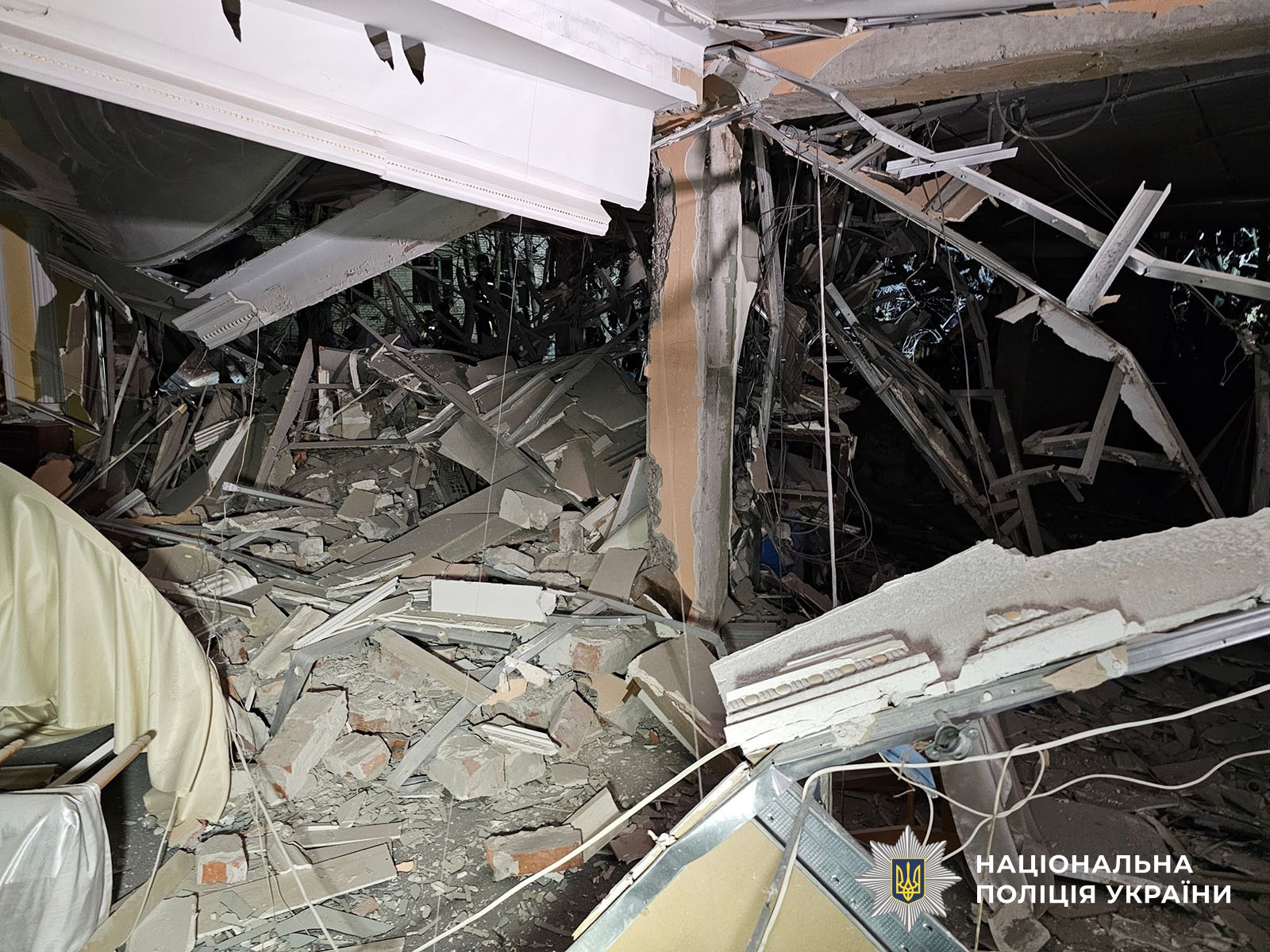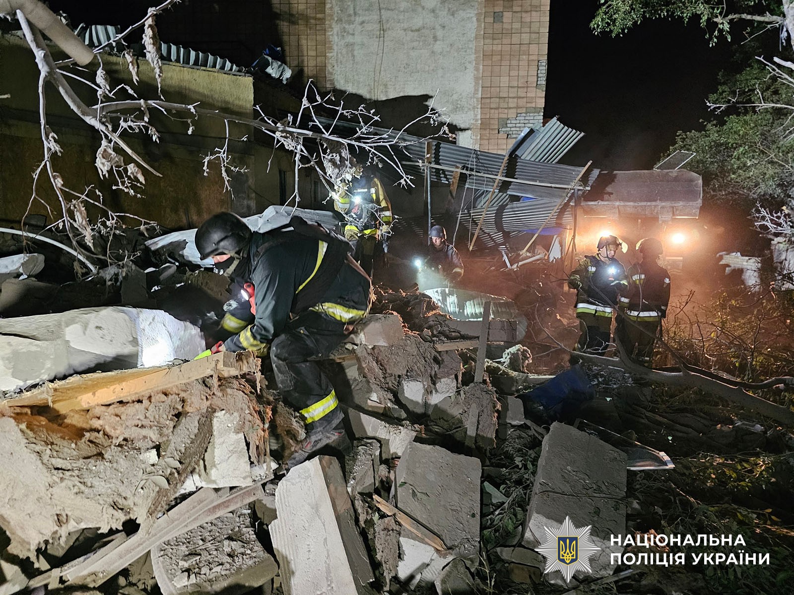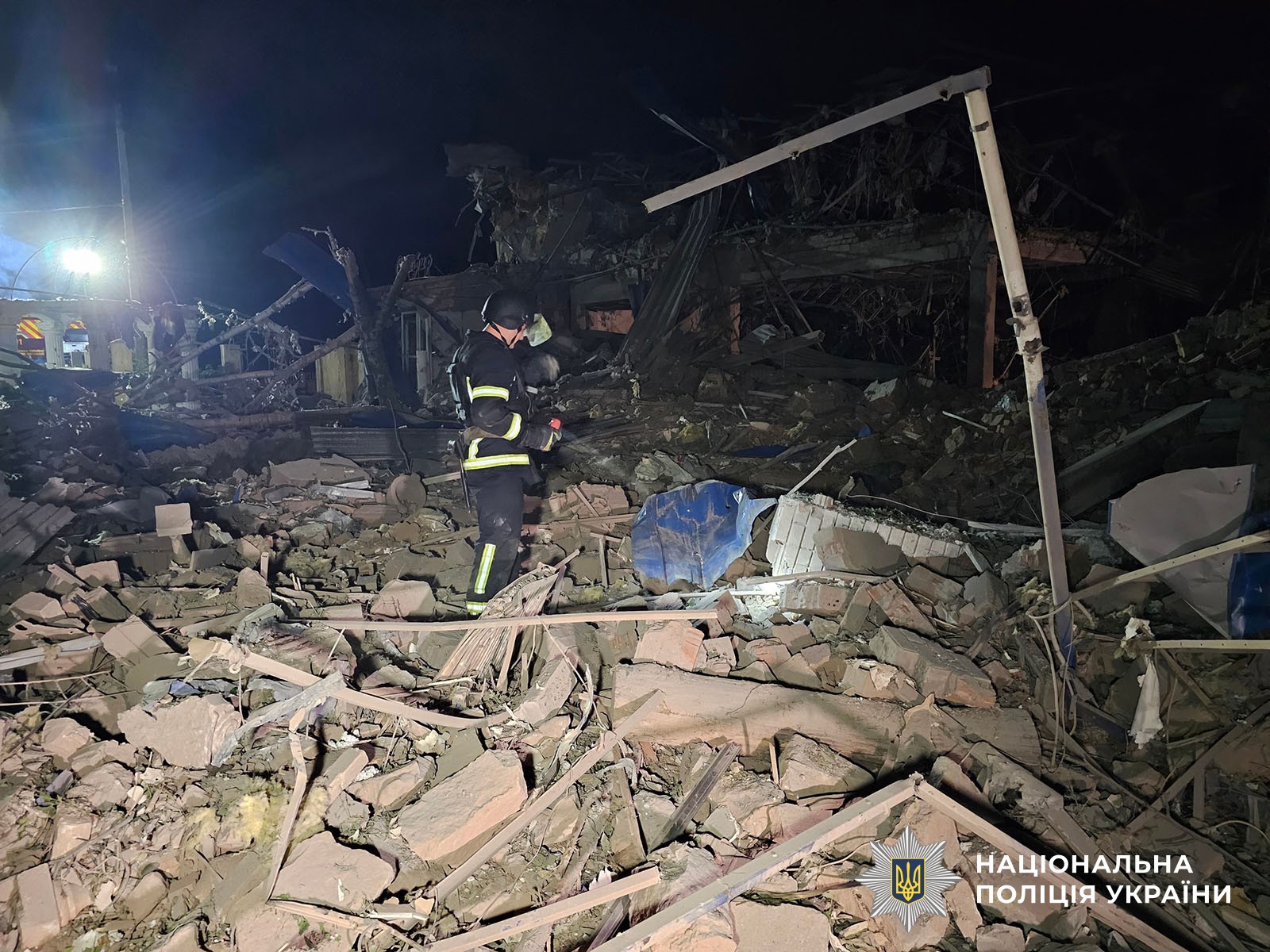 Одразу після удару на місце прибули слідчо-оперативна група, вибухотехніки, парамедики поліції. Правоохоронці допомагали розбирати уламки, фіксували наслідки обстрілу, евакуйовували людей і надавали допомогу.