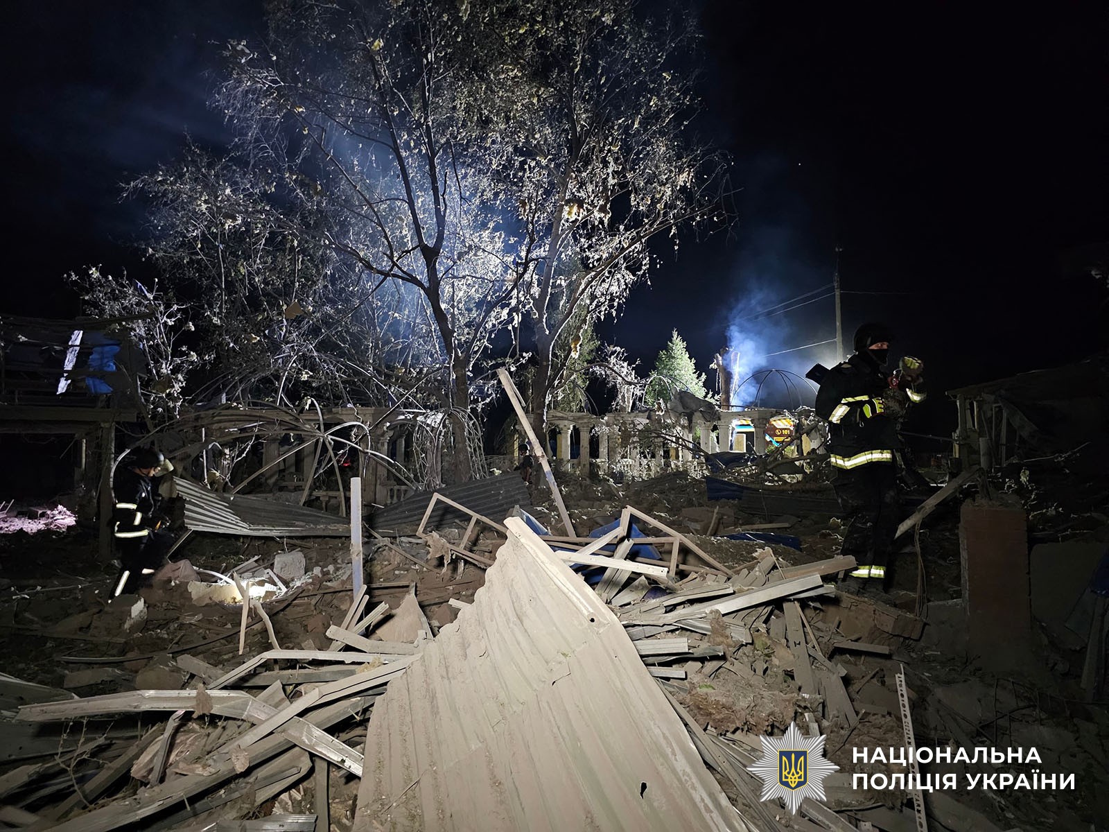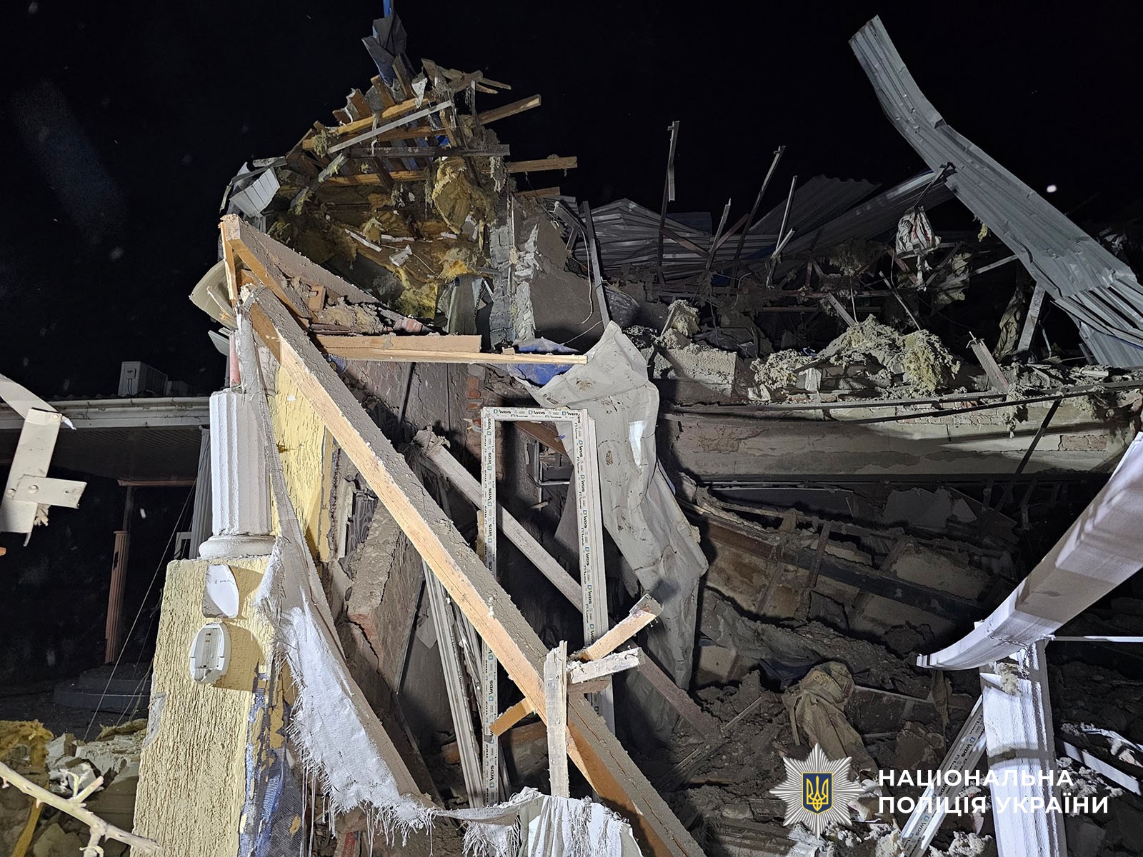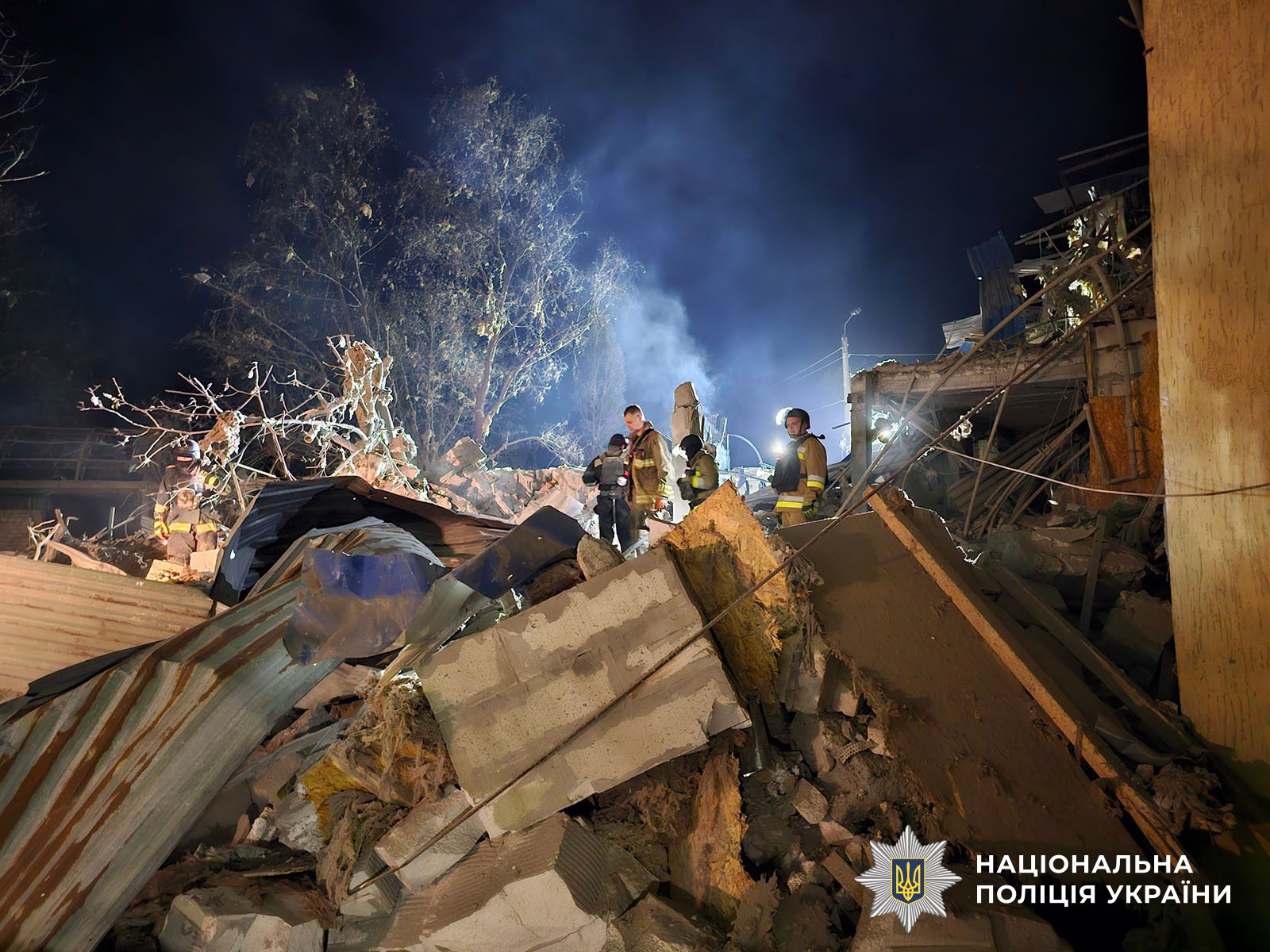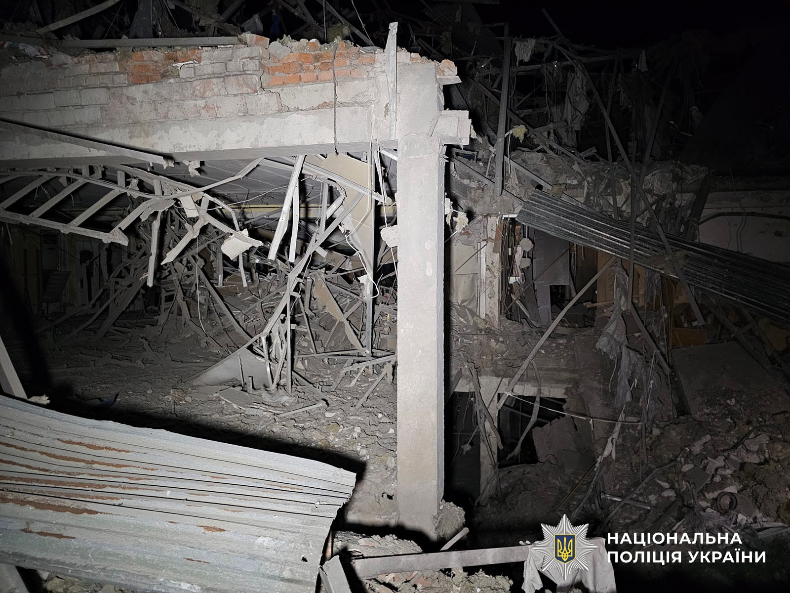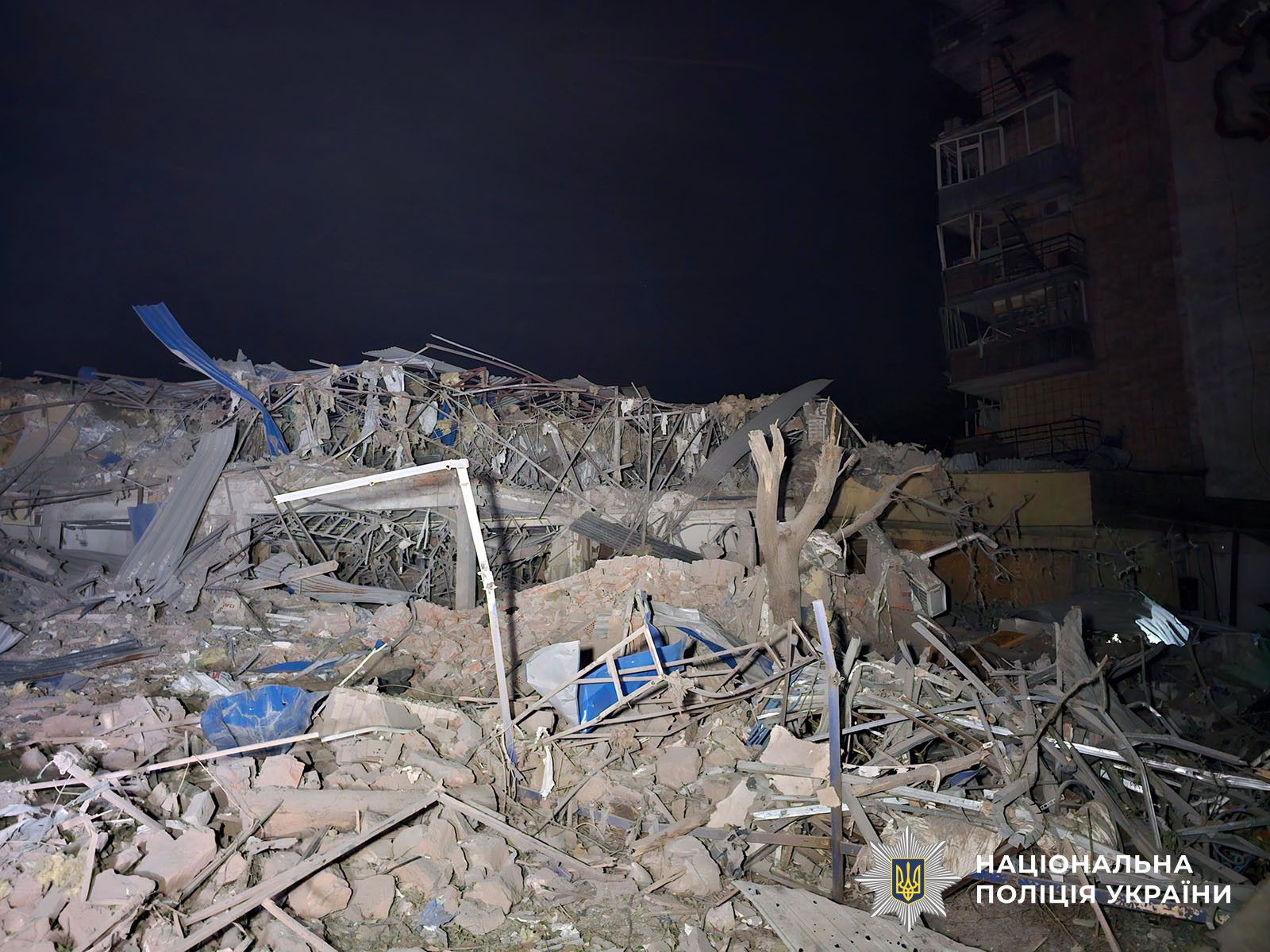 Одразу після удару на місце прибули слідчо-оперативна група, вибухотехніки, парамедики поліції. Правоохоронці допомагали розбирати уламки, фіксували наслідки обстрілу, евакуйовували людей і надавали допомогу.